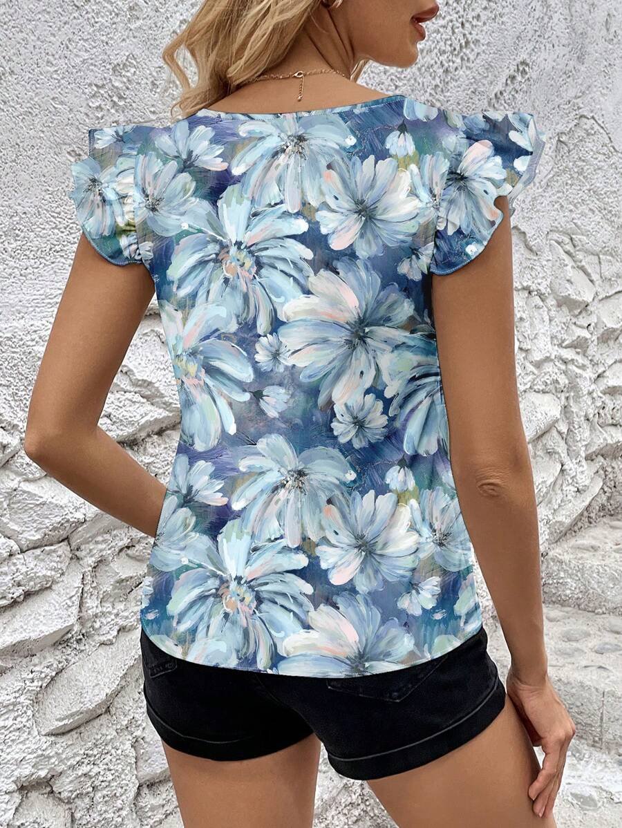 Blusa ajustada para mujeres con estampado de teñido anudado en azul