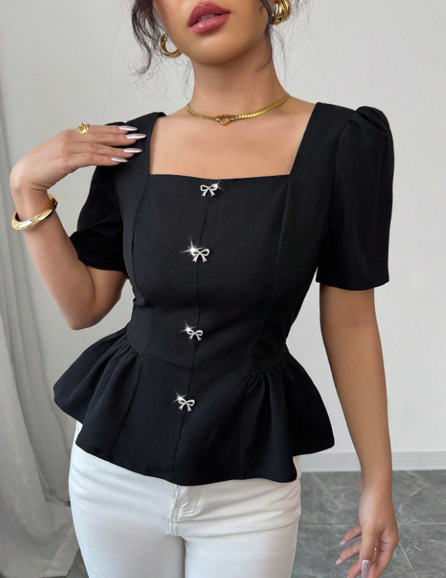 Blusa casual de mujer con volante asimétrico en unicolor