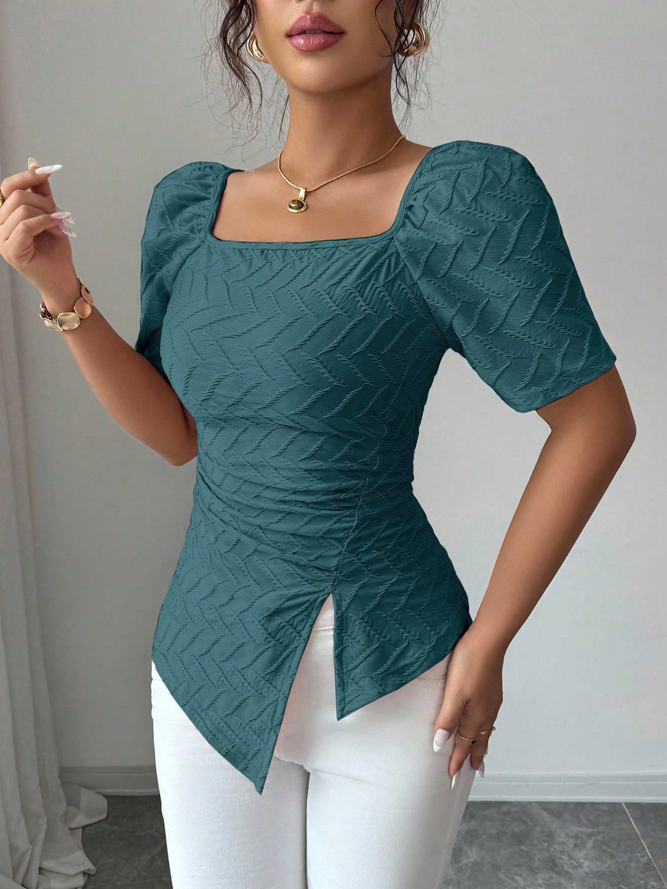 Blusa casual para mujer con cuello cuadrado y mangas cortas