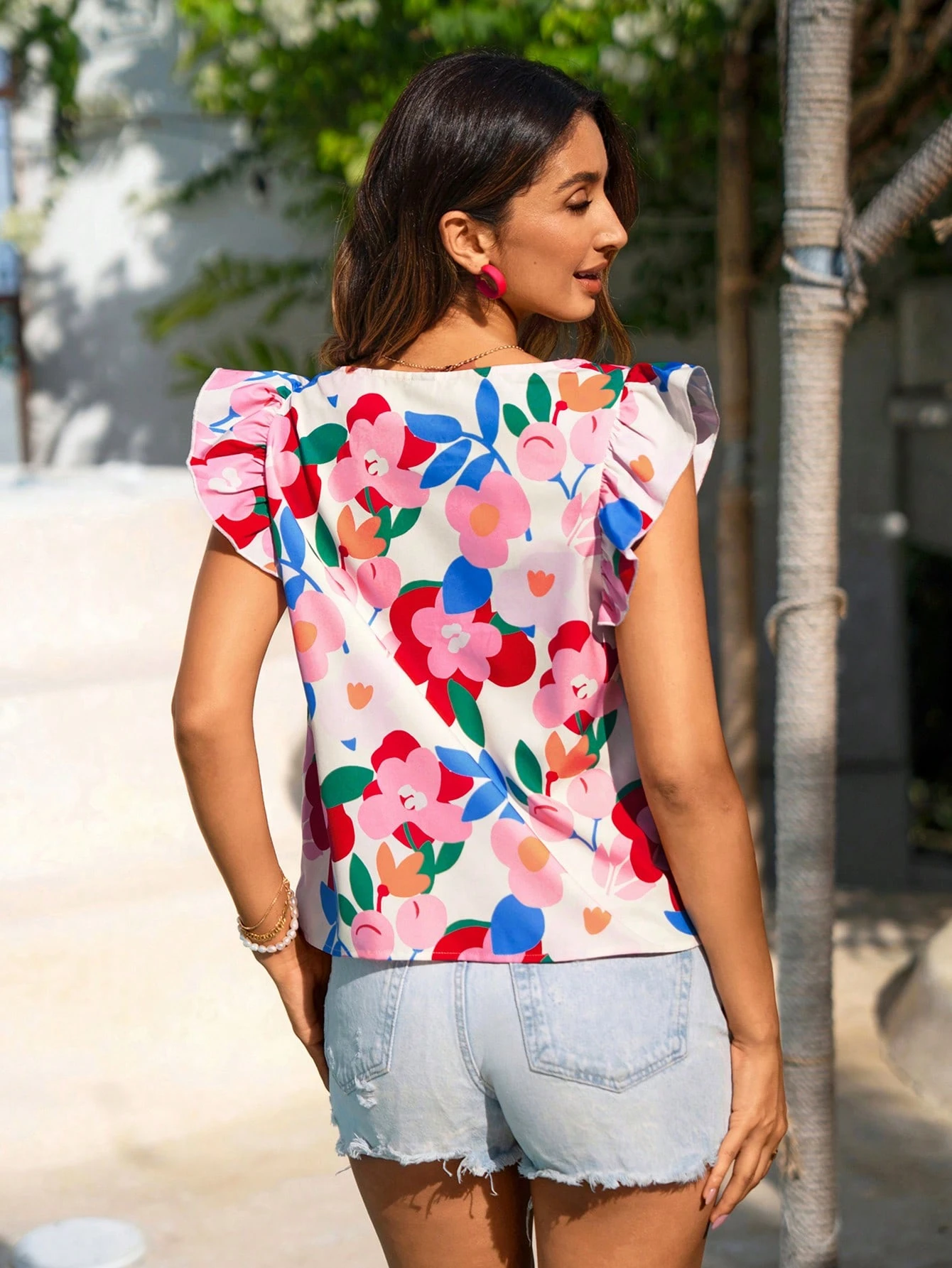 Blusa con cuello cuadrado tejida, de manga acampanada