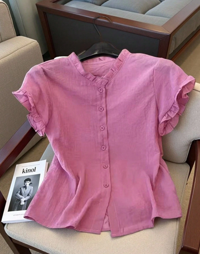 Blusa con cuello en pico y estampado de argyle dorado aleatorio