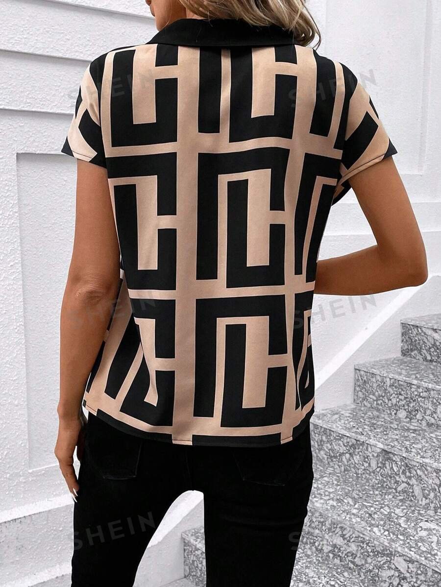 Blusa Con Cuello En V Y Estampado Geométrico