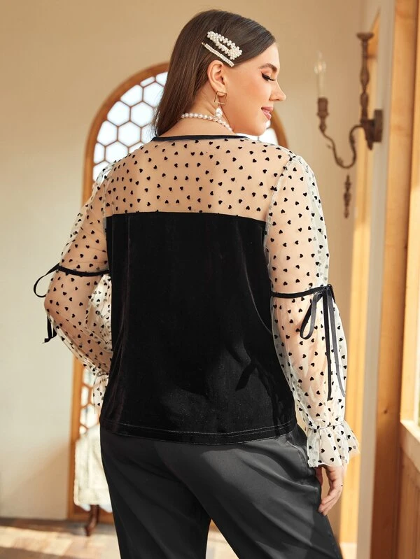 Blusa con estampado de coraz?n de manga con volante transparente de terciopelo