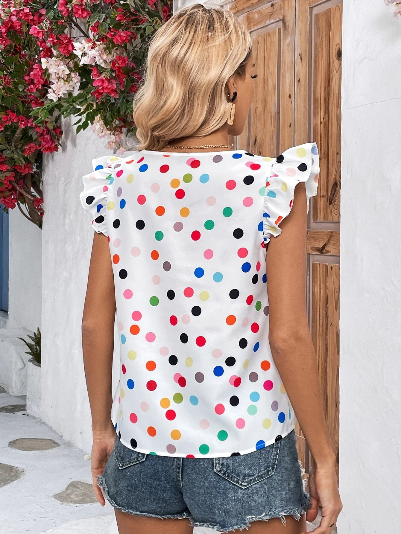 Blusa con estampado de lunares ribete con fruncido