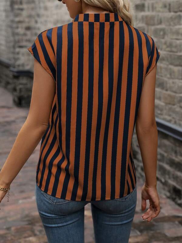 Blusa con estampado de rayas de cuello notch de manga murci?lago