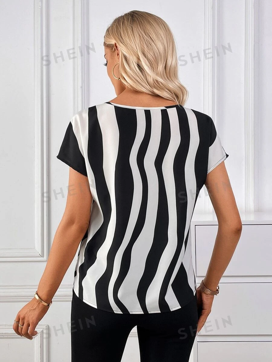 Blusa con estampado de rayas de cuello