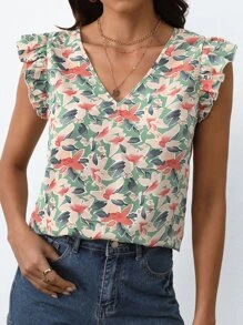 Blusa con estampado floral con cord?n trasero ribete con fruncido