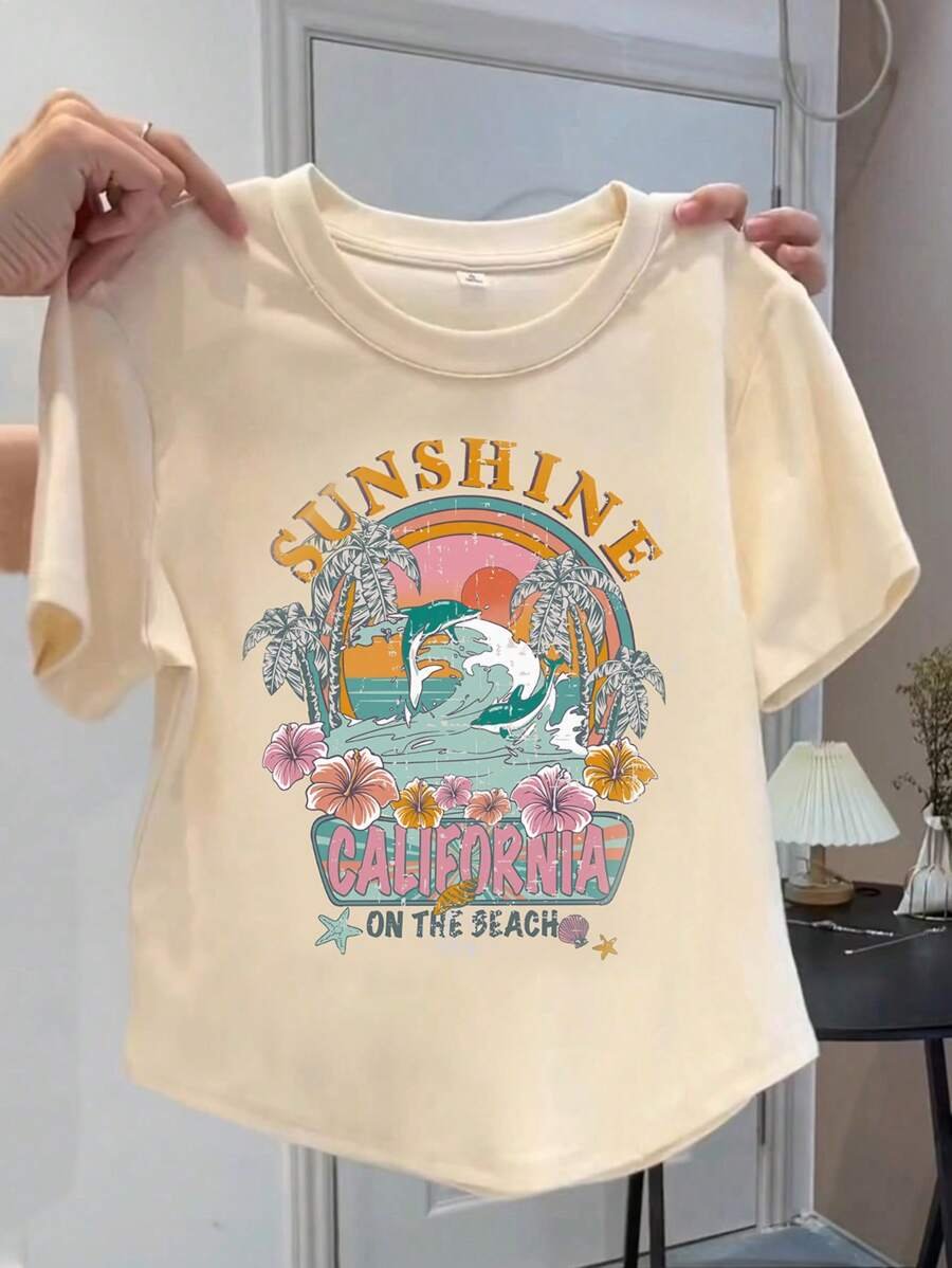 Camiseta de manga corta con cuello redondo en talla grande, de efecto 3D con estampado floral