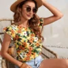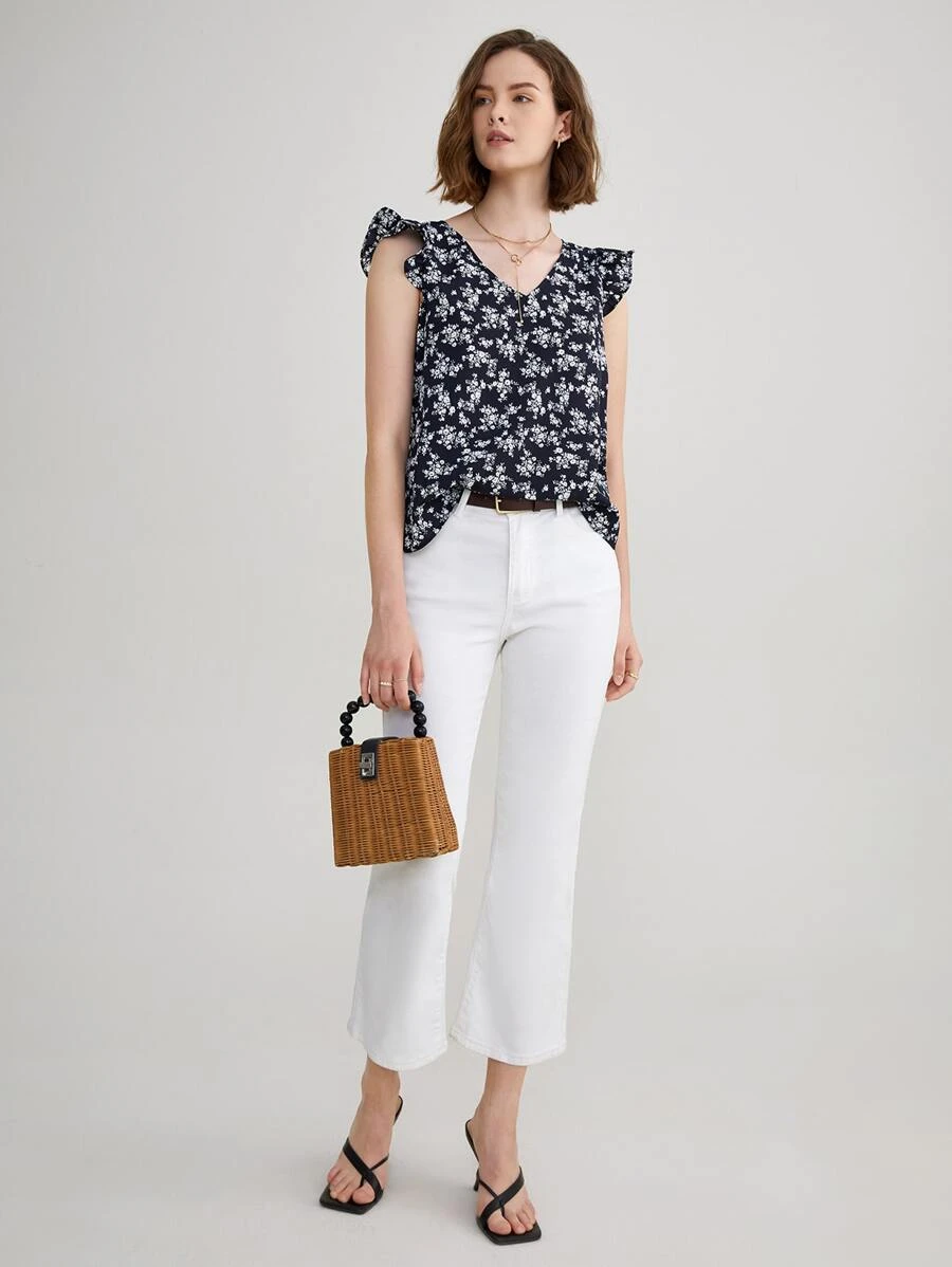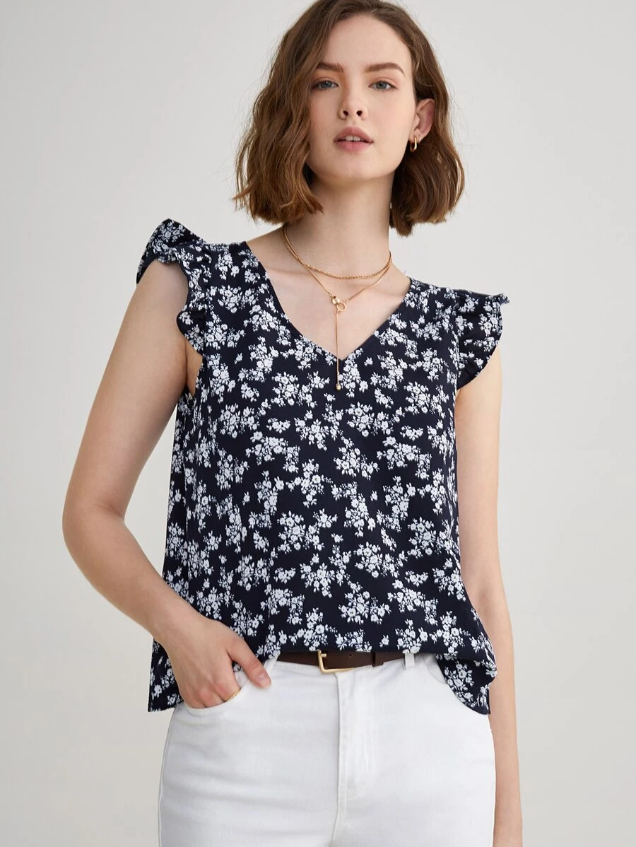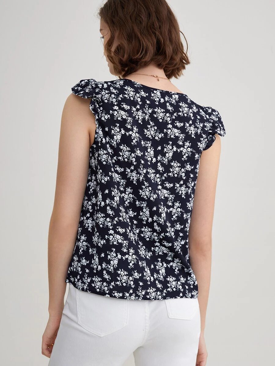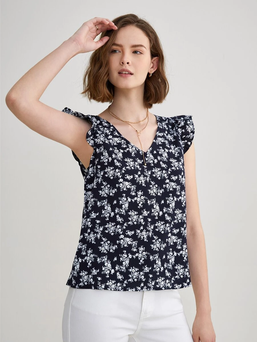 Blusa con estampado floral de manga con volante