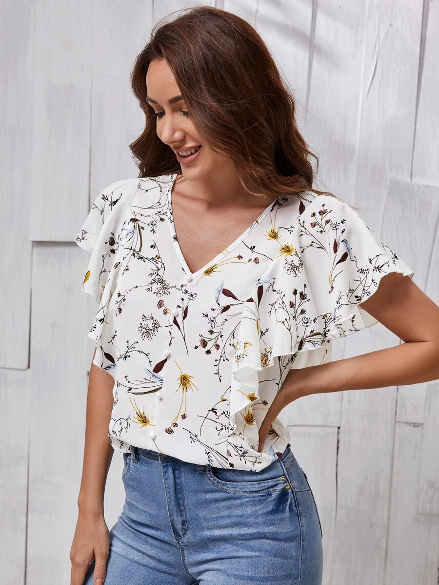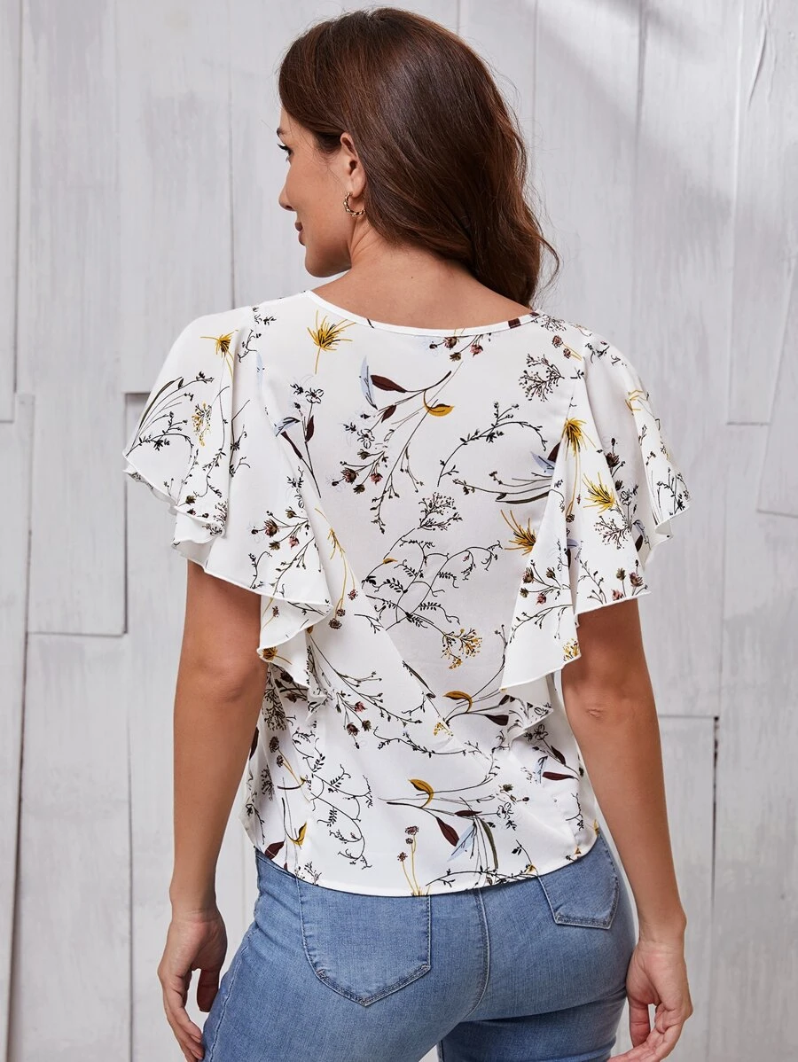 Blusa con estampado floral de manga mariposa