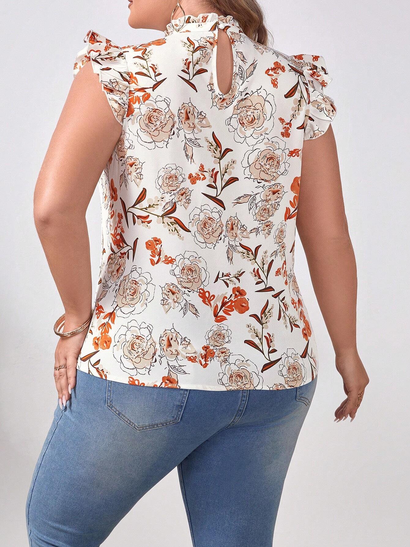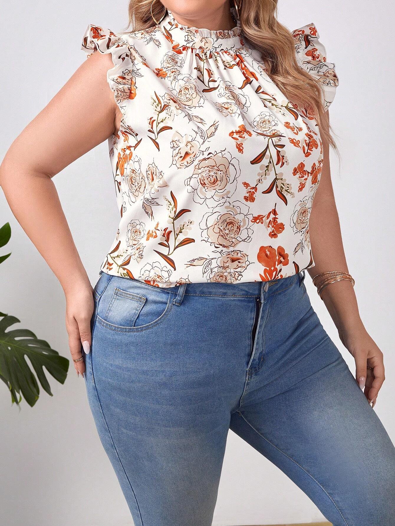 Blusa con estampado floral ribete con fruncido de cuello alto