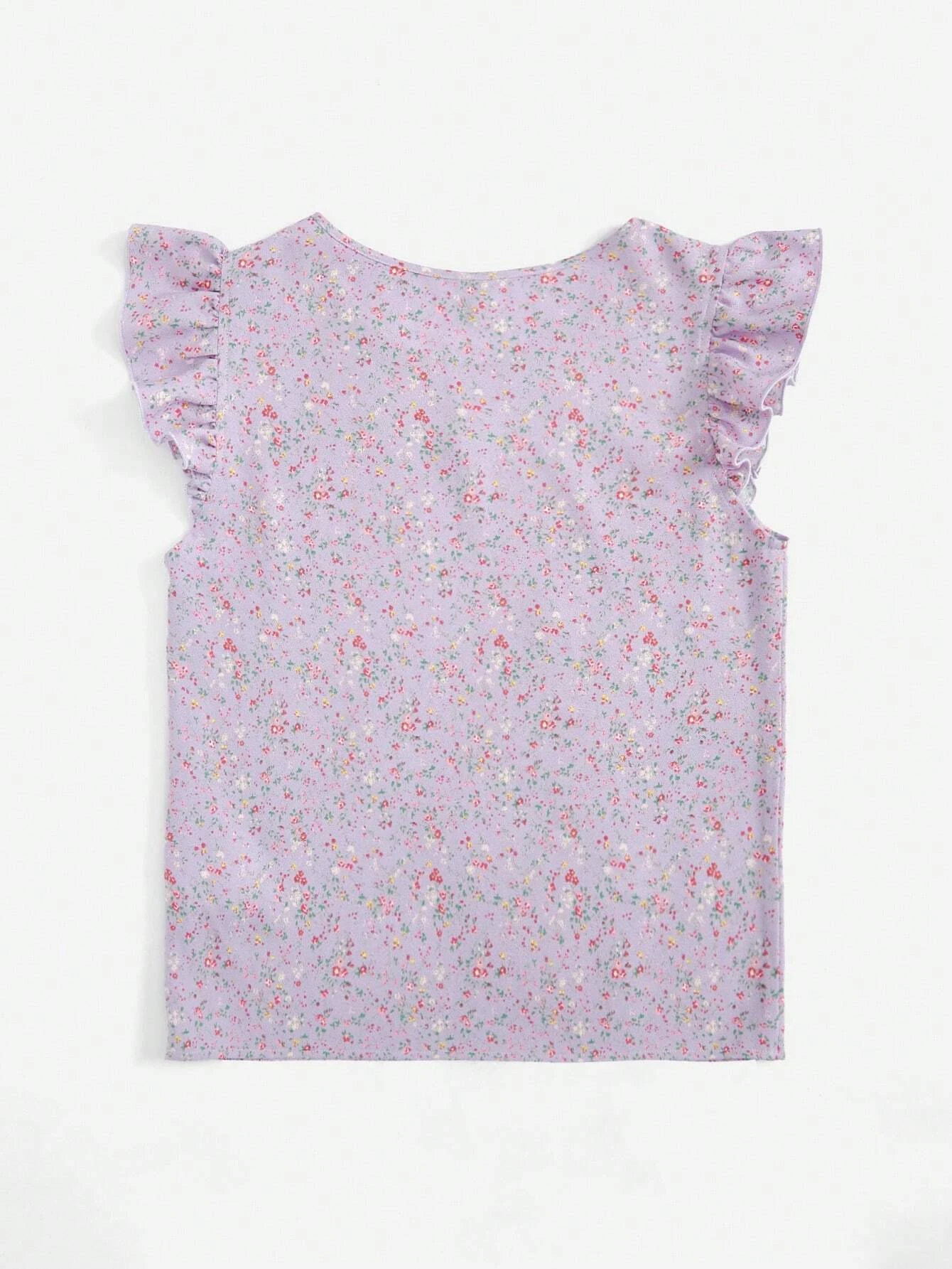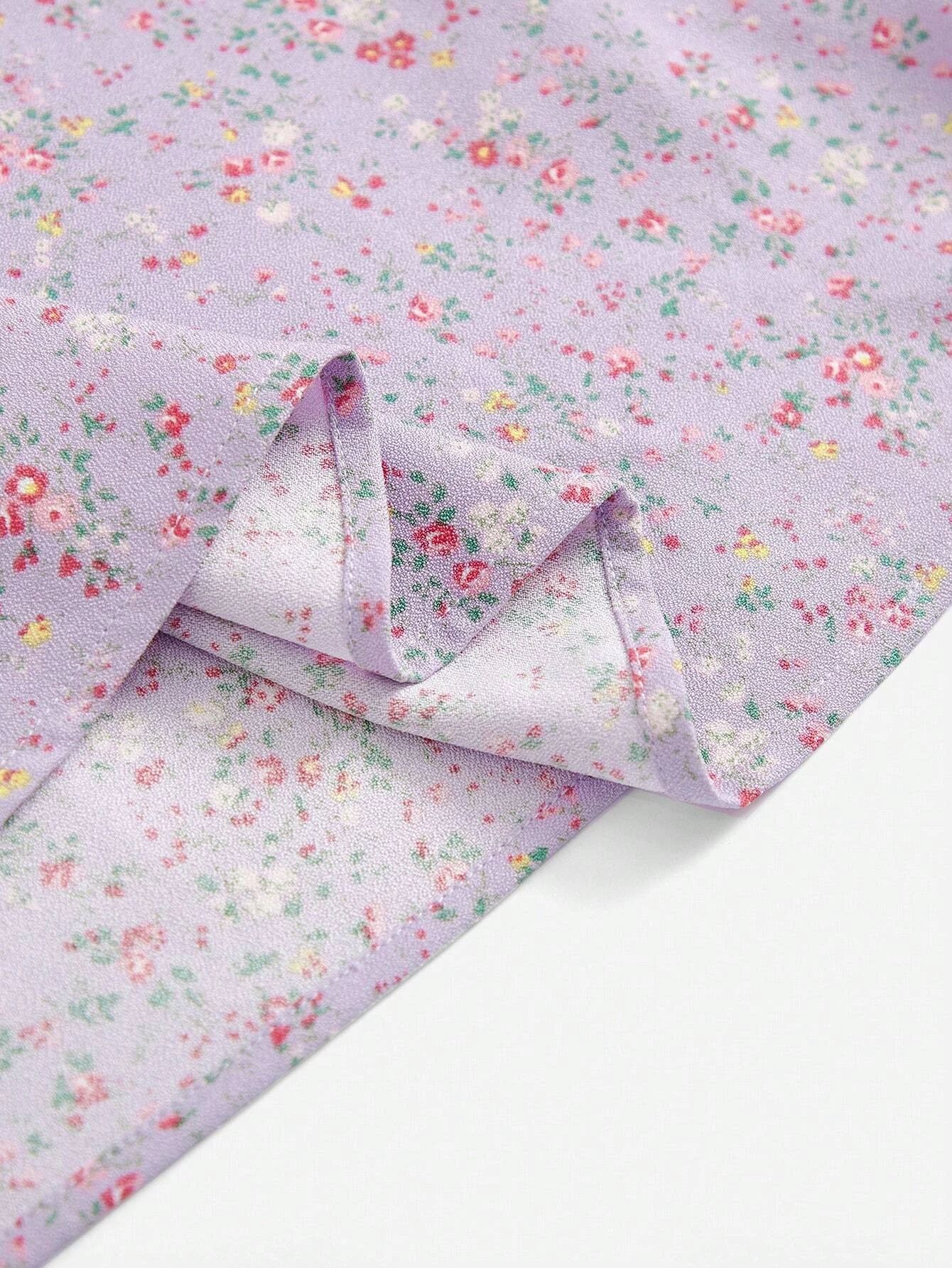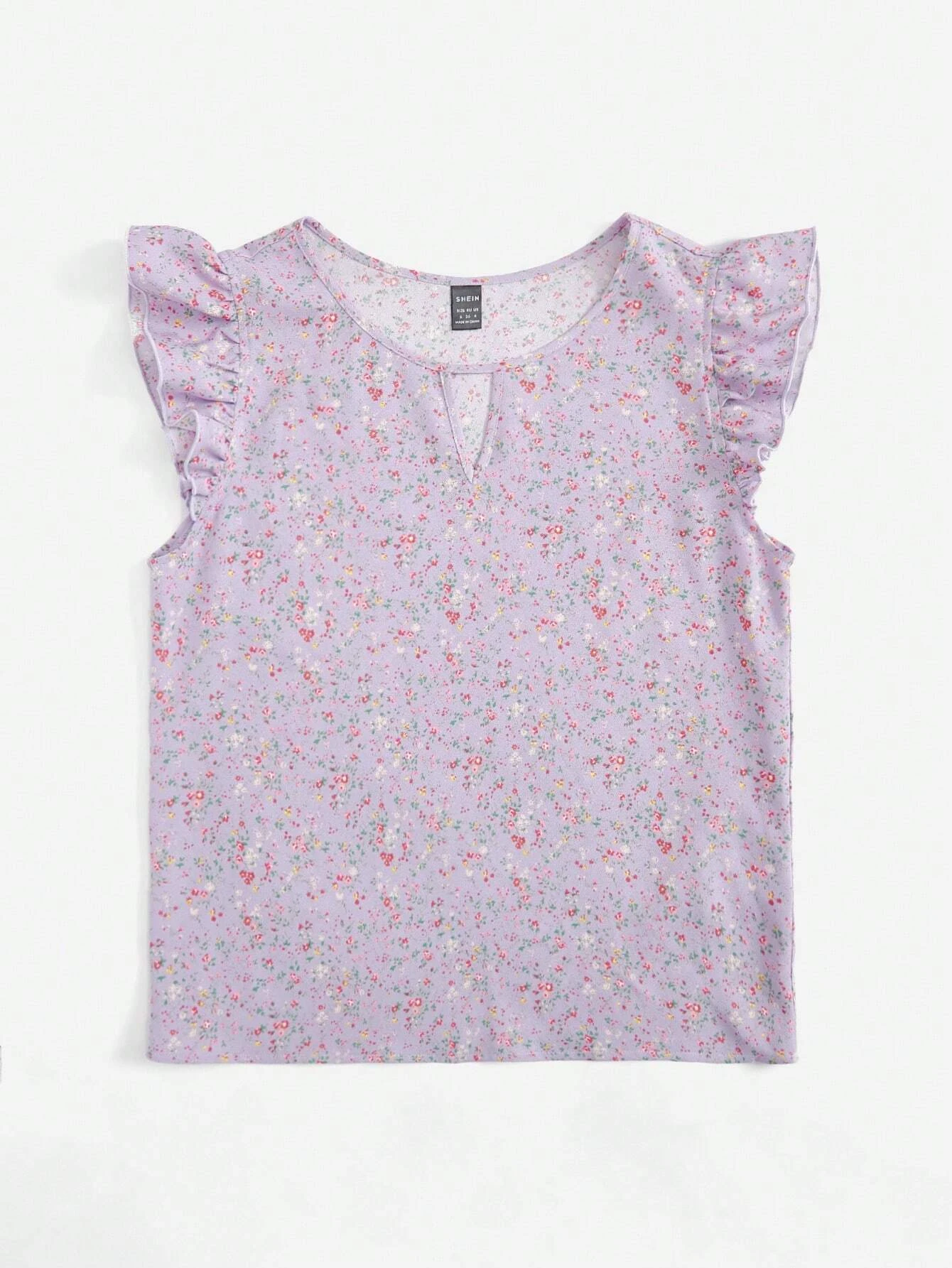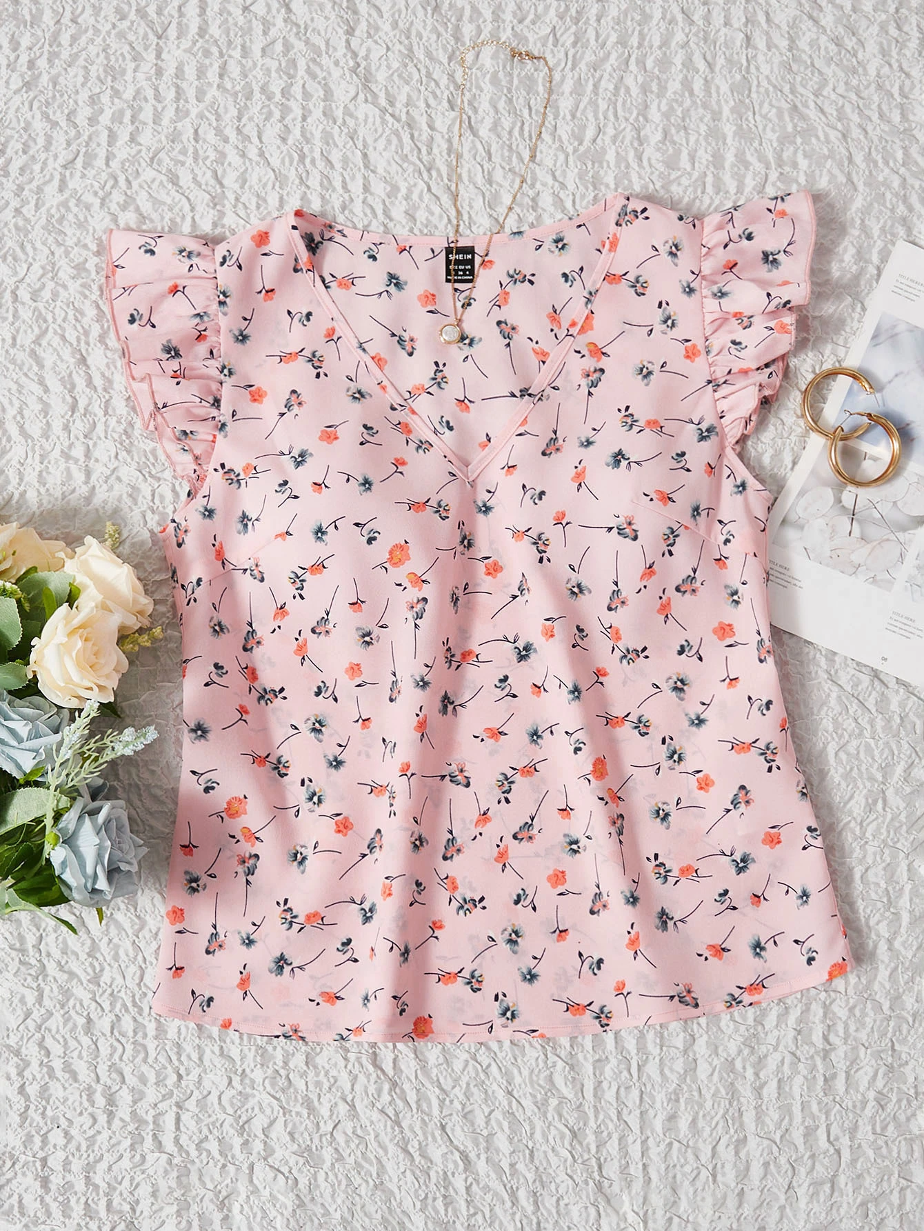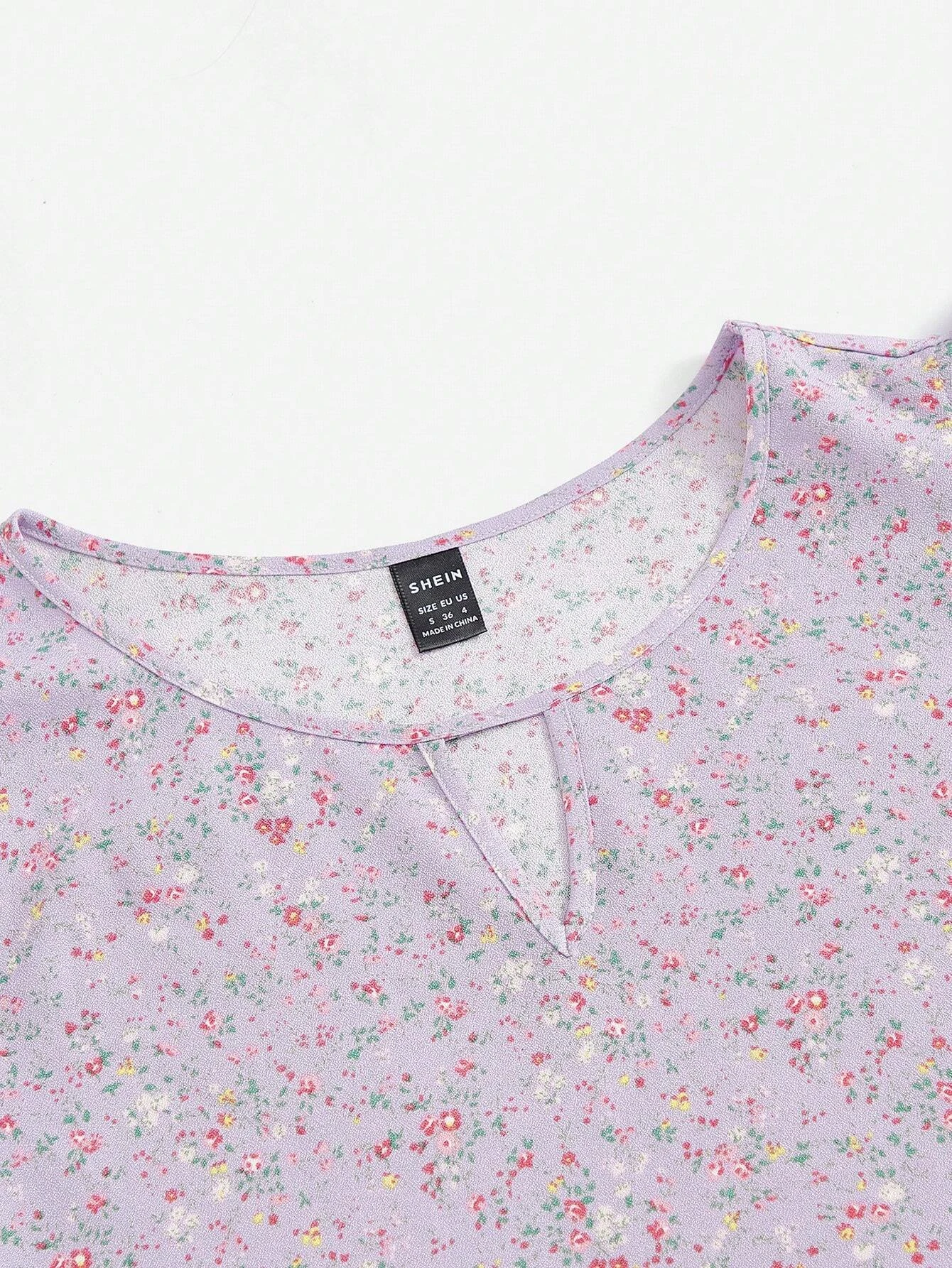 Blusa con estampado floral ribete con fruncido de cuello con abertura de ojo de manga mariposa