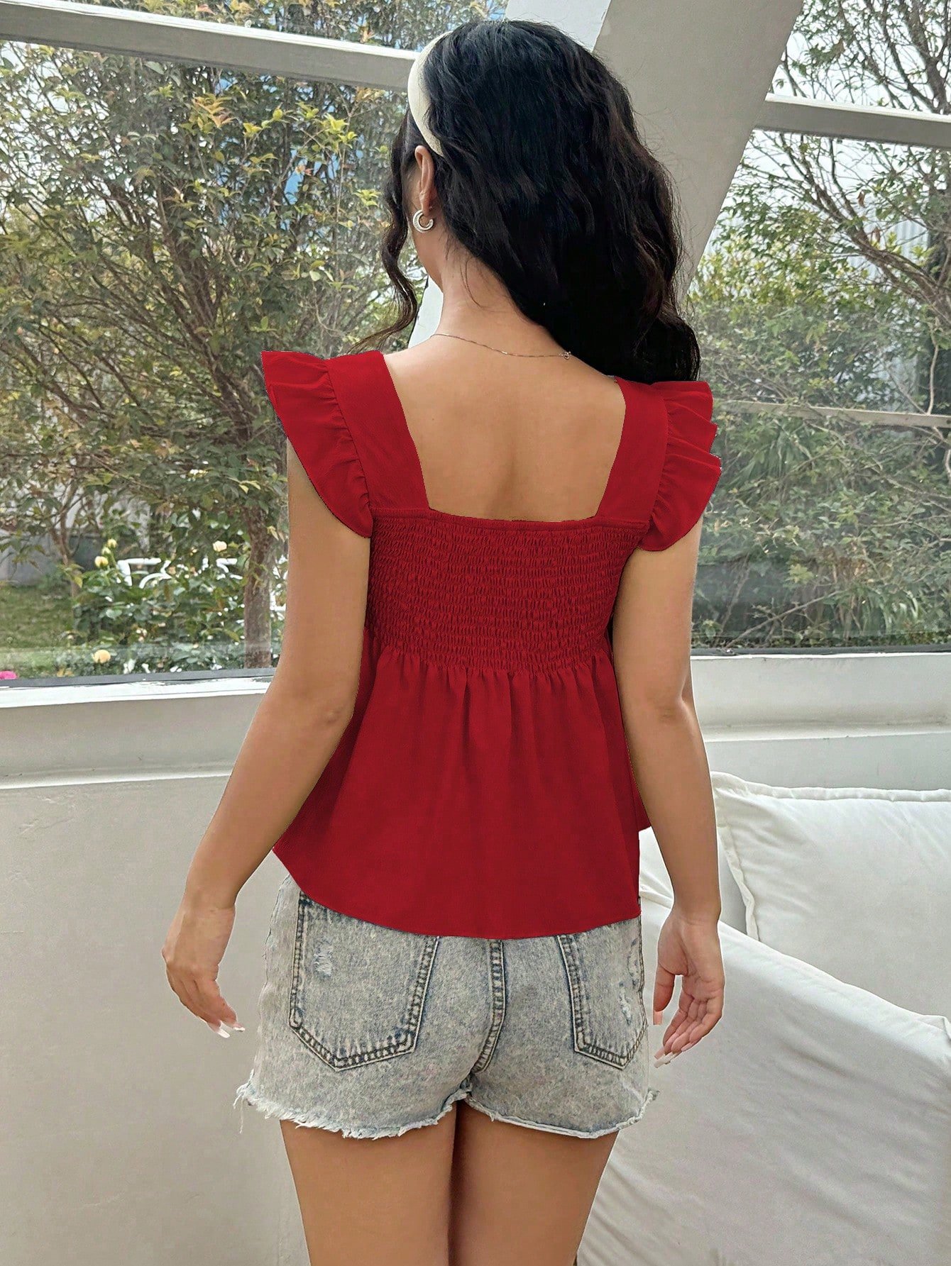 Blusa con fruncido en el pecho y cuello en forma de corazón