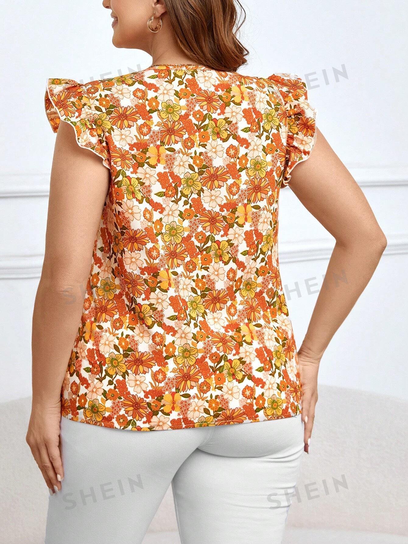 Blusa Con Mangas Voladoras En Talla Grande Y Estampado Floral