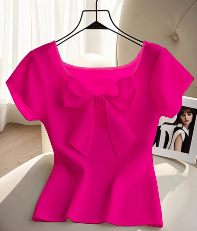 Blusa con volantes en el dobladillo, cuello lindo y detalle de atar al frente