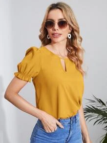 Blusa de cuello con abertura de ojo de manga farol