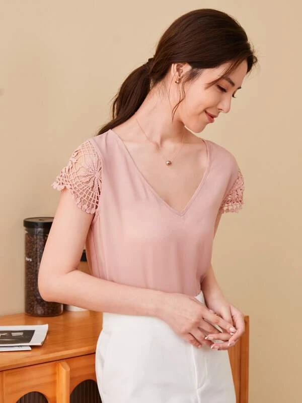 Producto anterior Siguiente producto Blusa de cuello V con encaje en contraste SKU: sS2106150005289804 Categoría: Blusas Este producto no está disponible porque no quedan existencias. Descripción Descripción