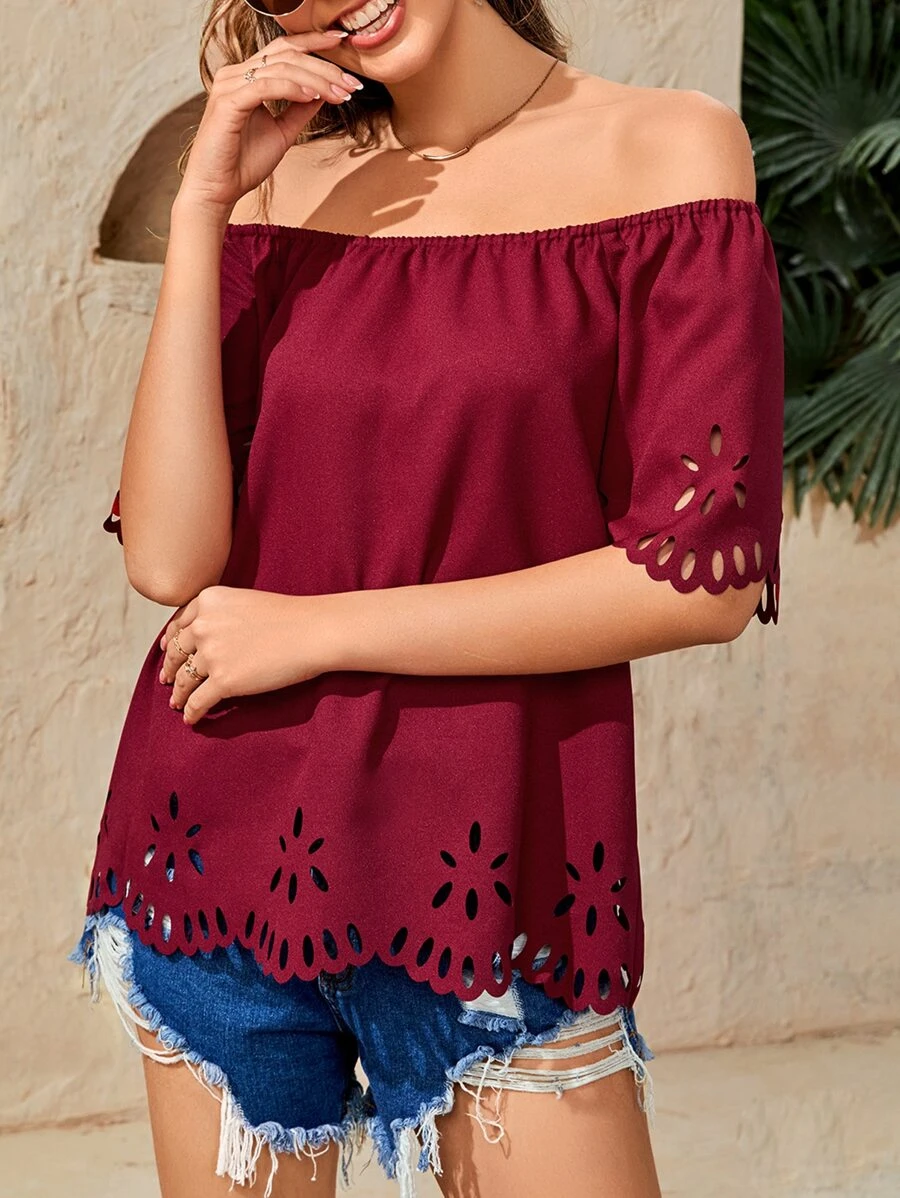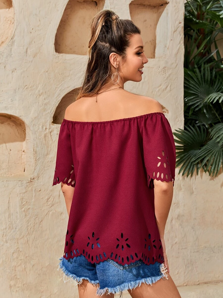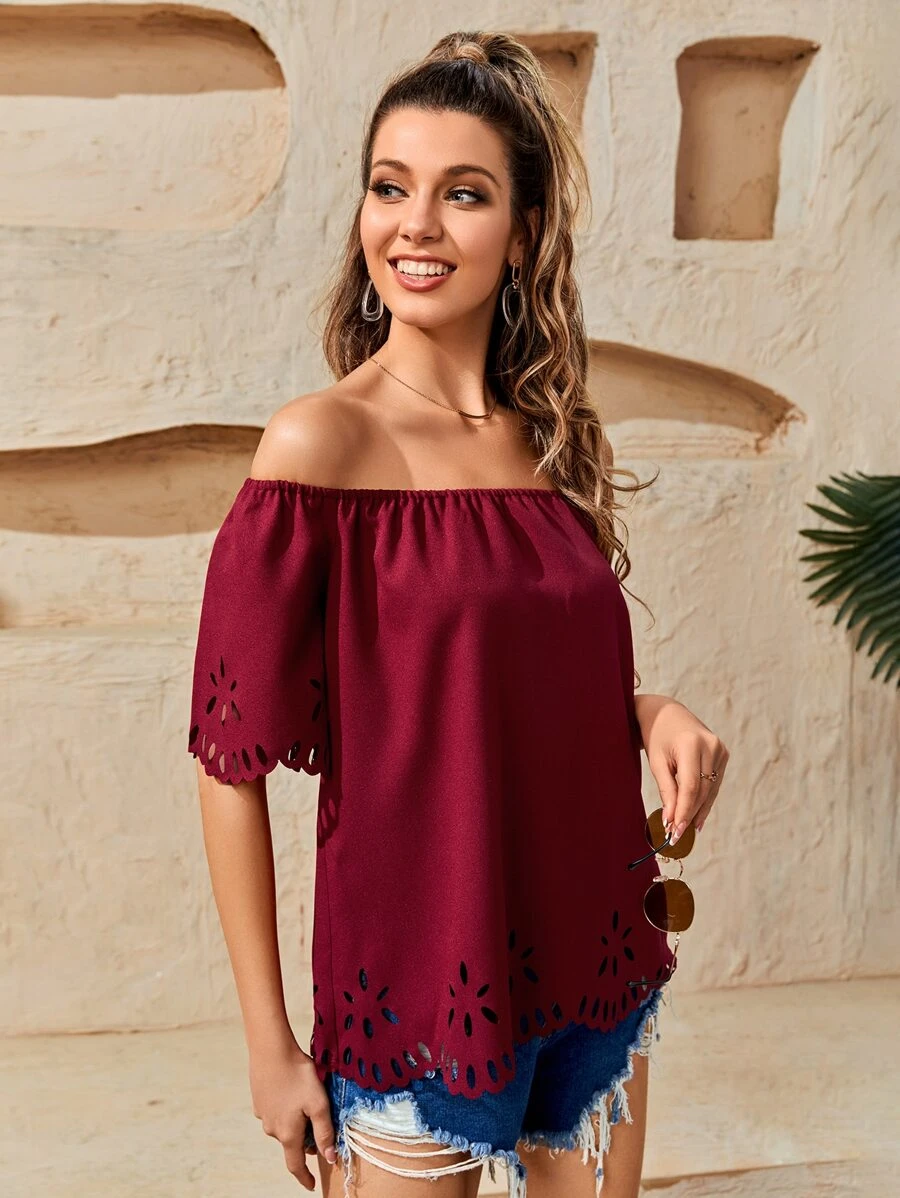 Blusa de hombros descubiertos cortado l?ser