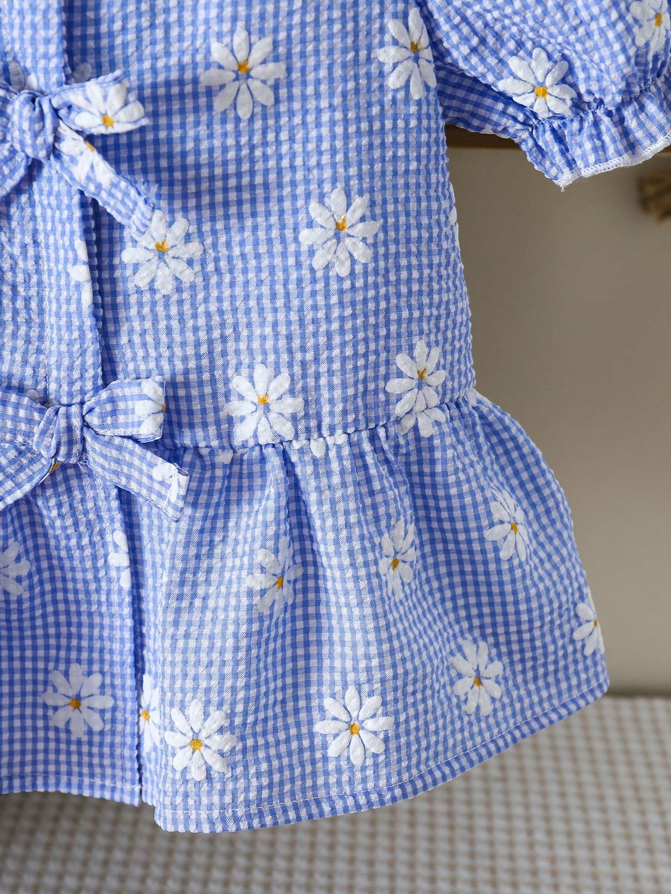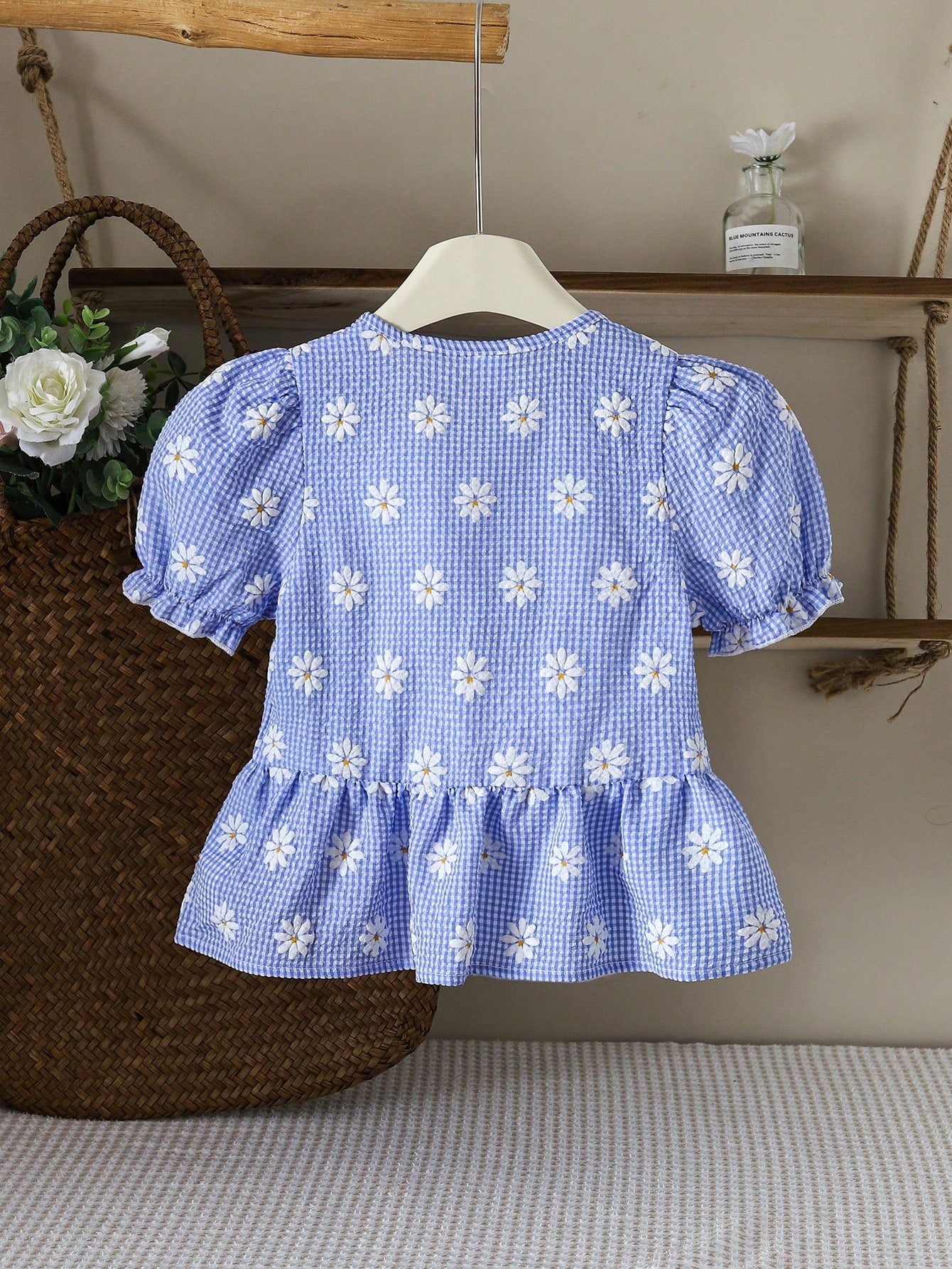 Blusa de manga abullonada con lazo y estampado de margaritas