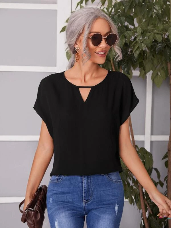 Blusa de manga con volante de espalda con abertura de ojo
