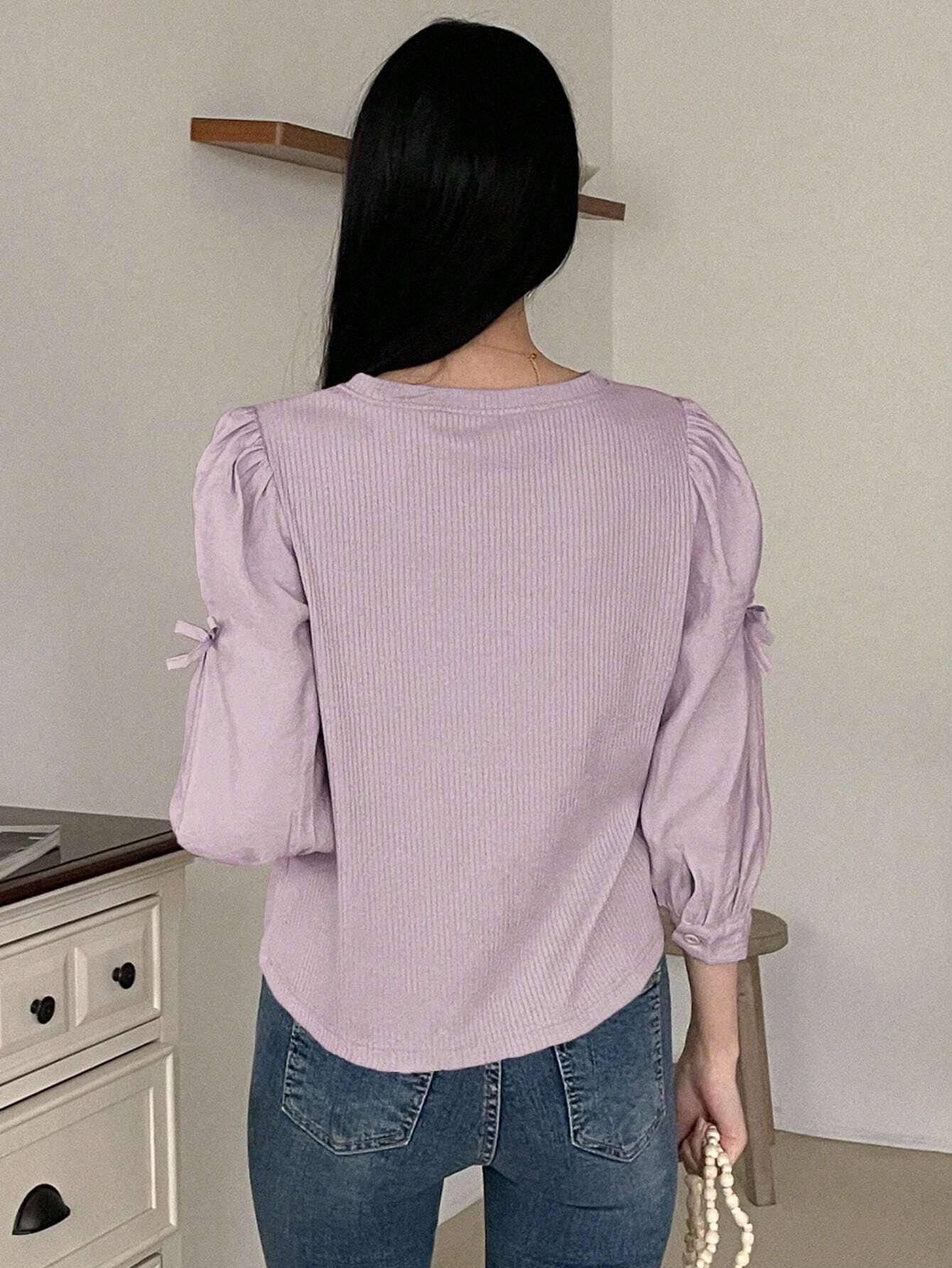 Blusa de manga larga con cuello redondo y lazo decorativo