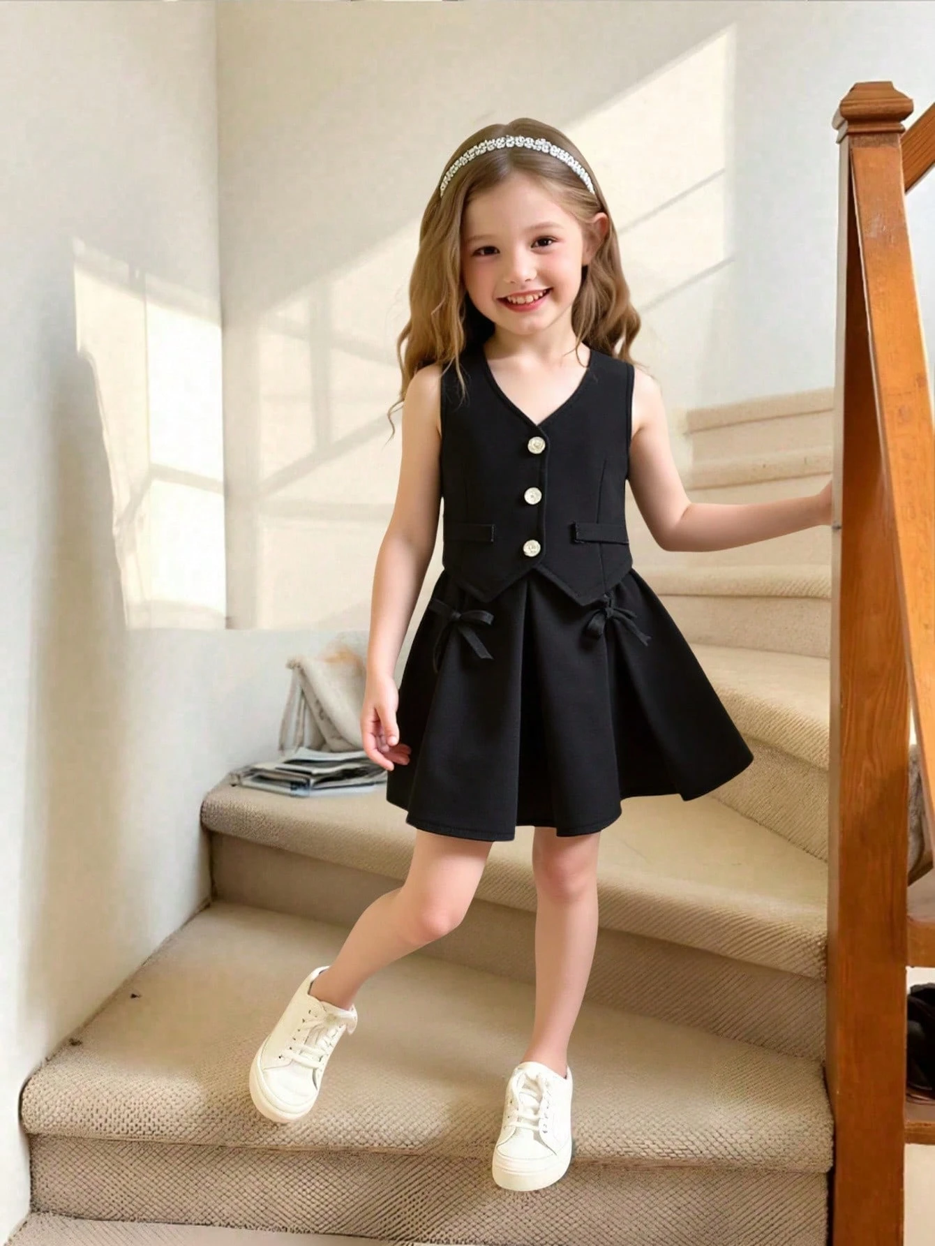 Blusa de manga larga con flor de perla 3D y falda con lazo
