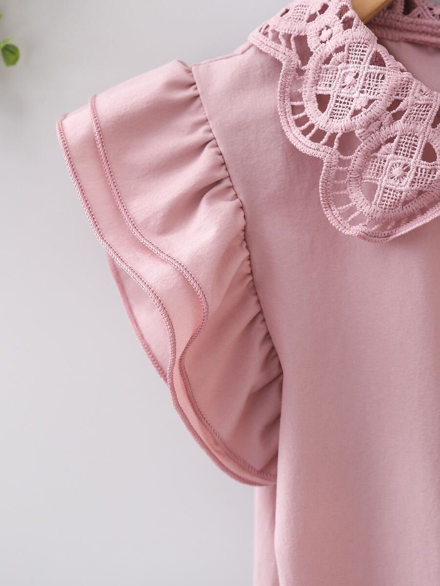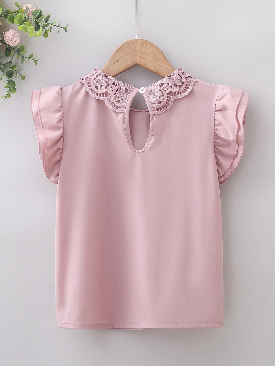 Blusa De Manga Superpuesta Con Collar De Encaje En Contraste