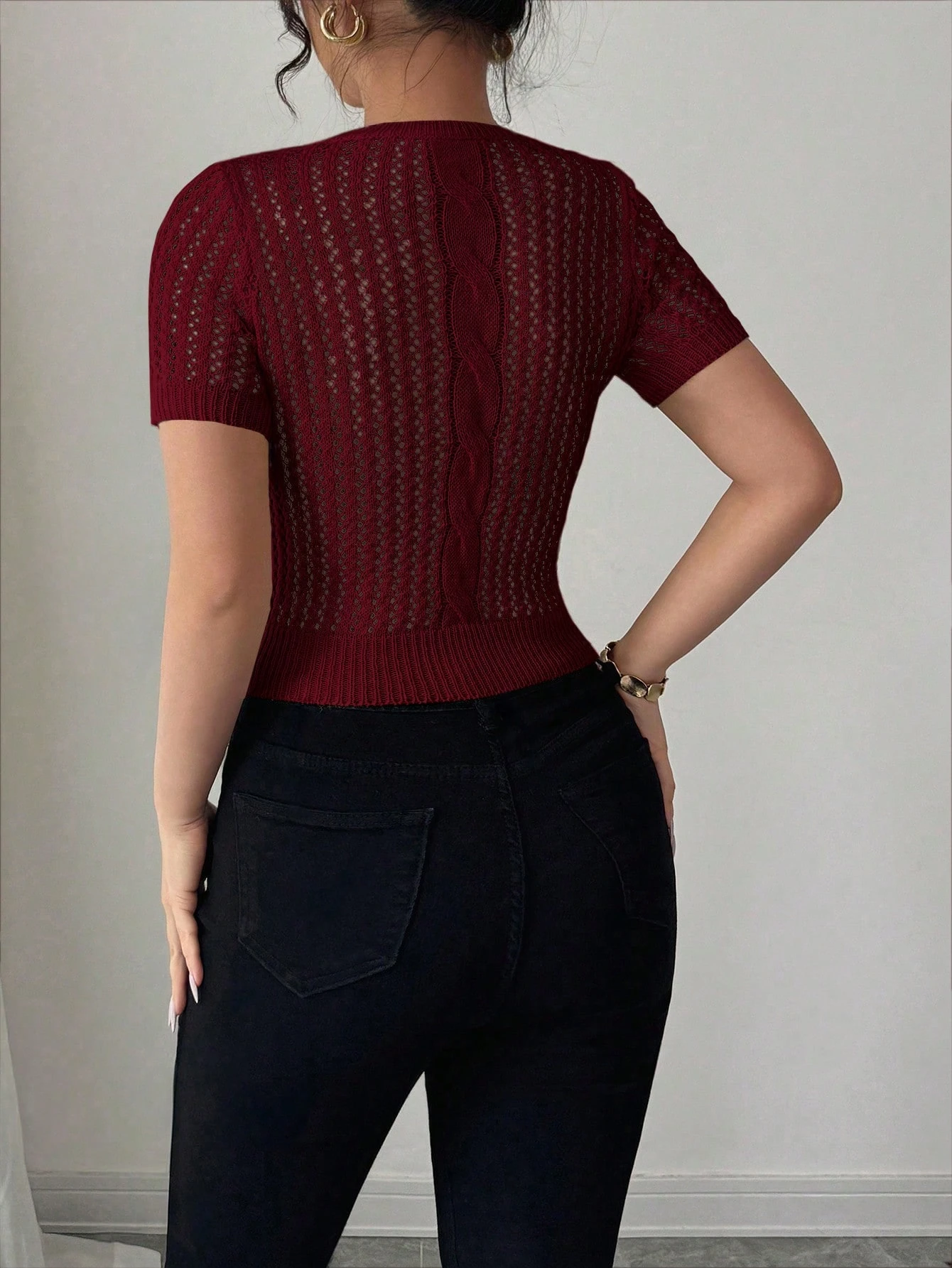 Blusa de mujer con tejido de cuerda hueco y decoración
