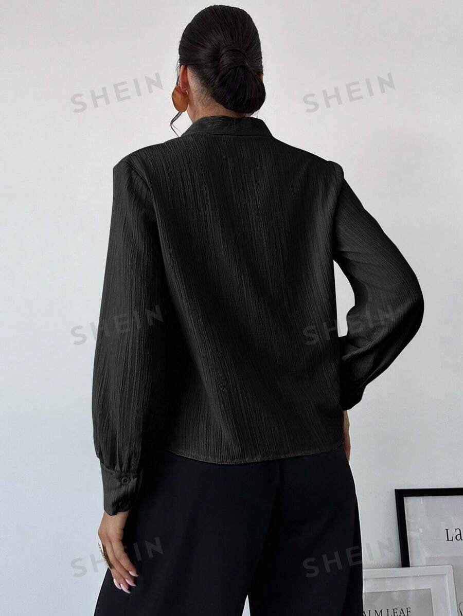 Blusa de mujer de manga larga con cuello en V unicolor, sencilla y cómoda