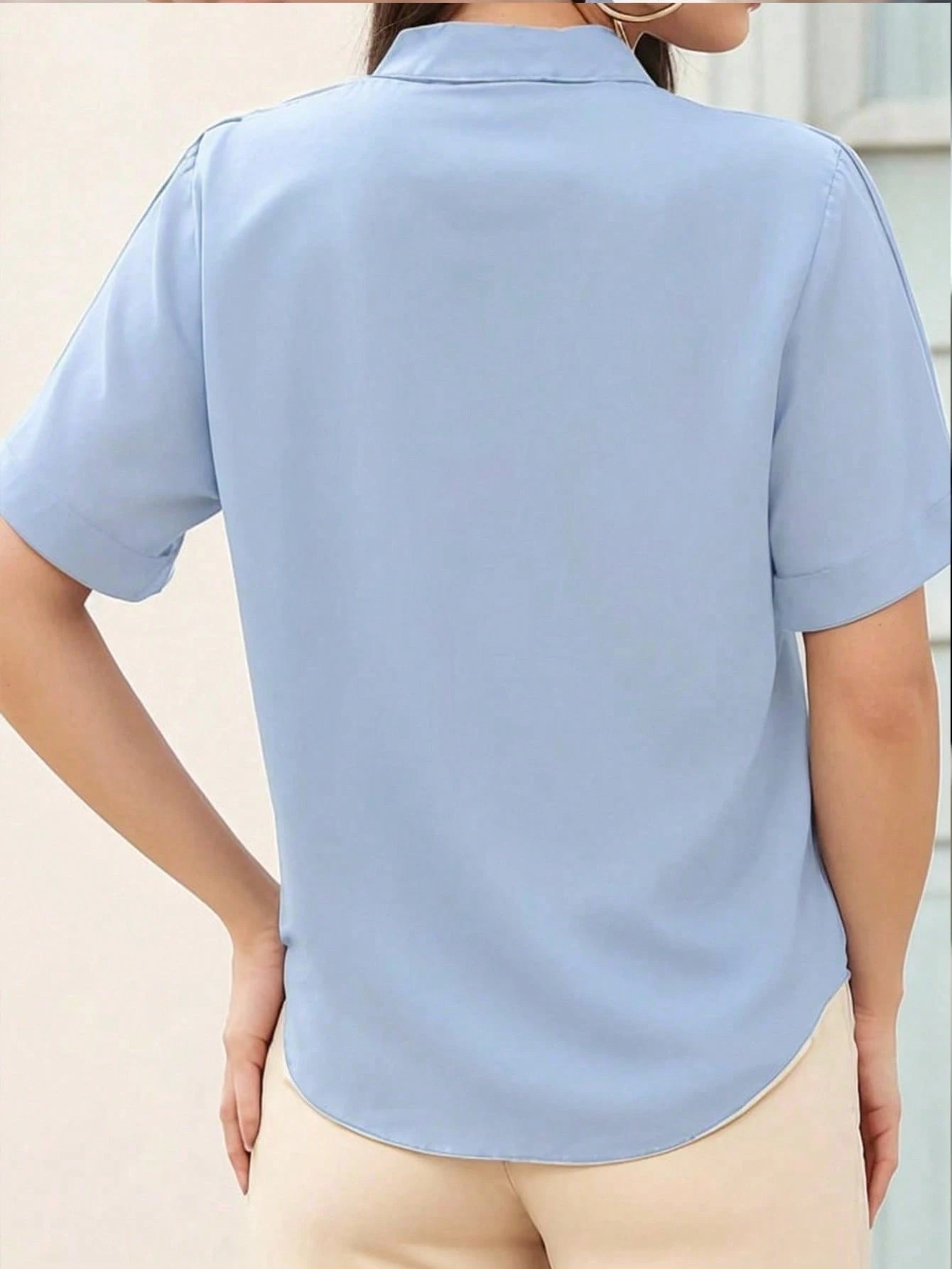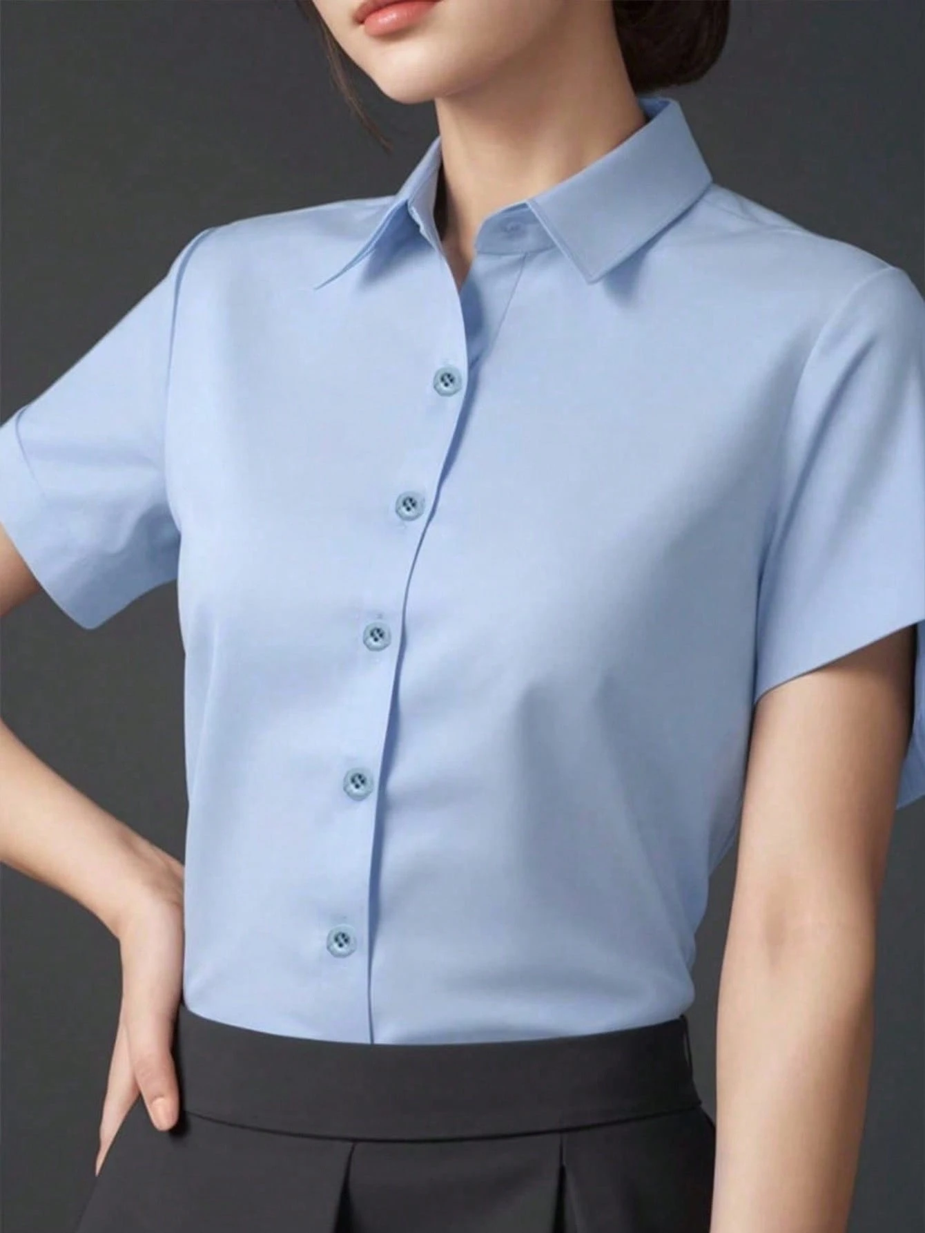 Blusa de mujer de unicolor, de manga corta, estilo casual y sencillo