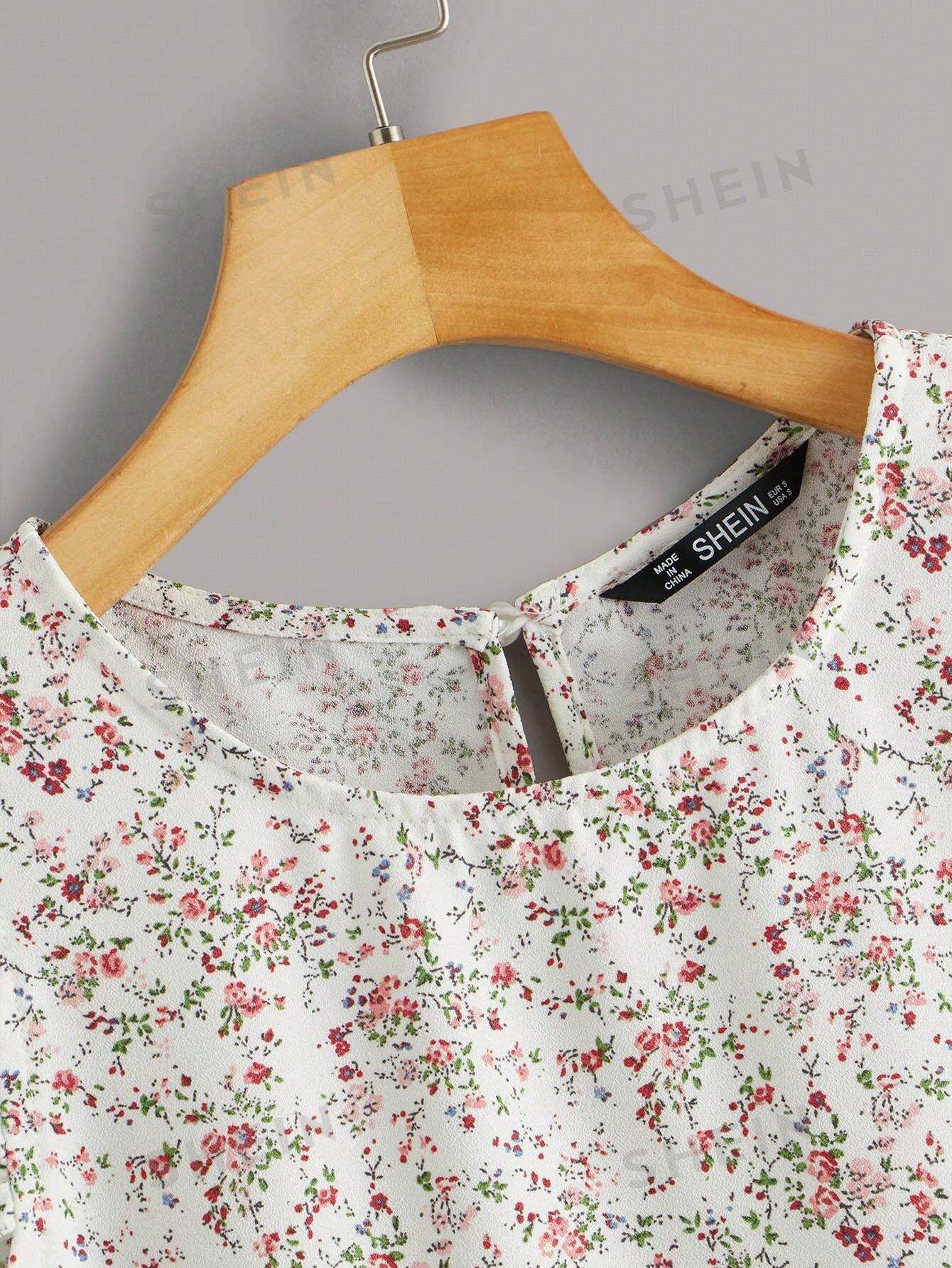 Blusa de sisa fruncido con estampado floral de margarita