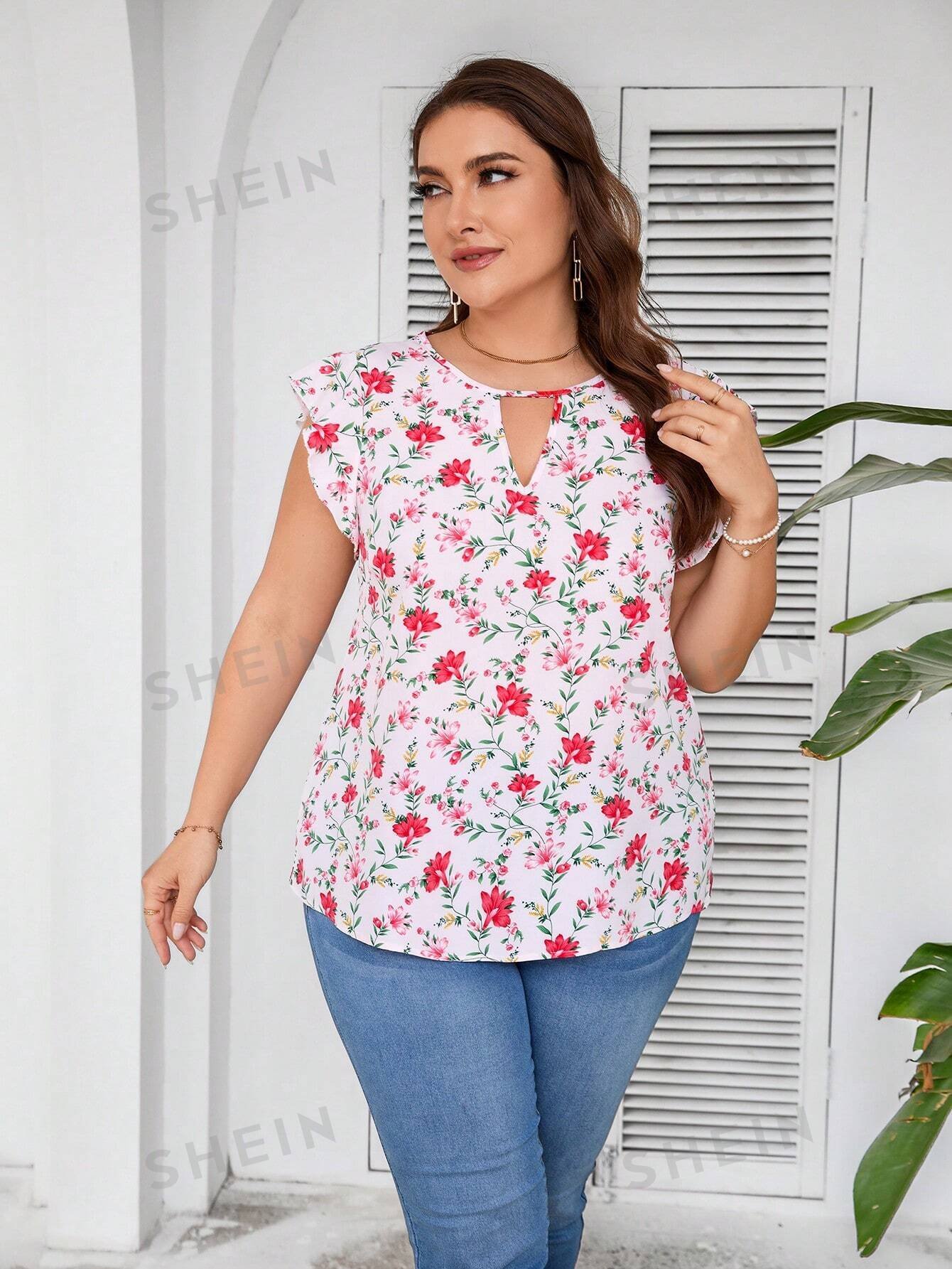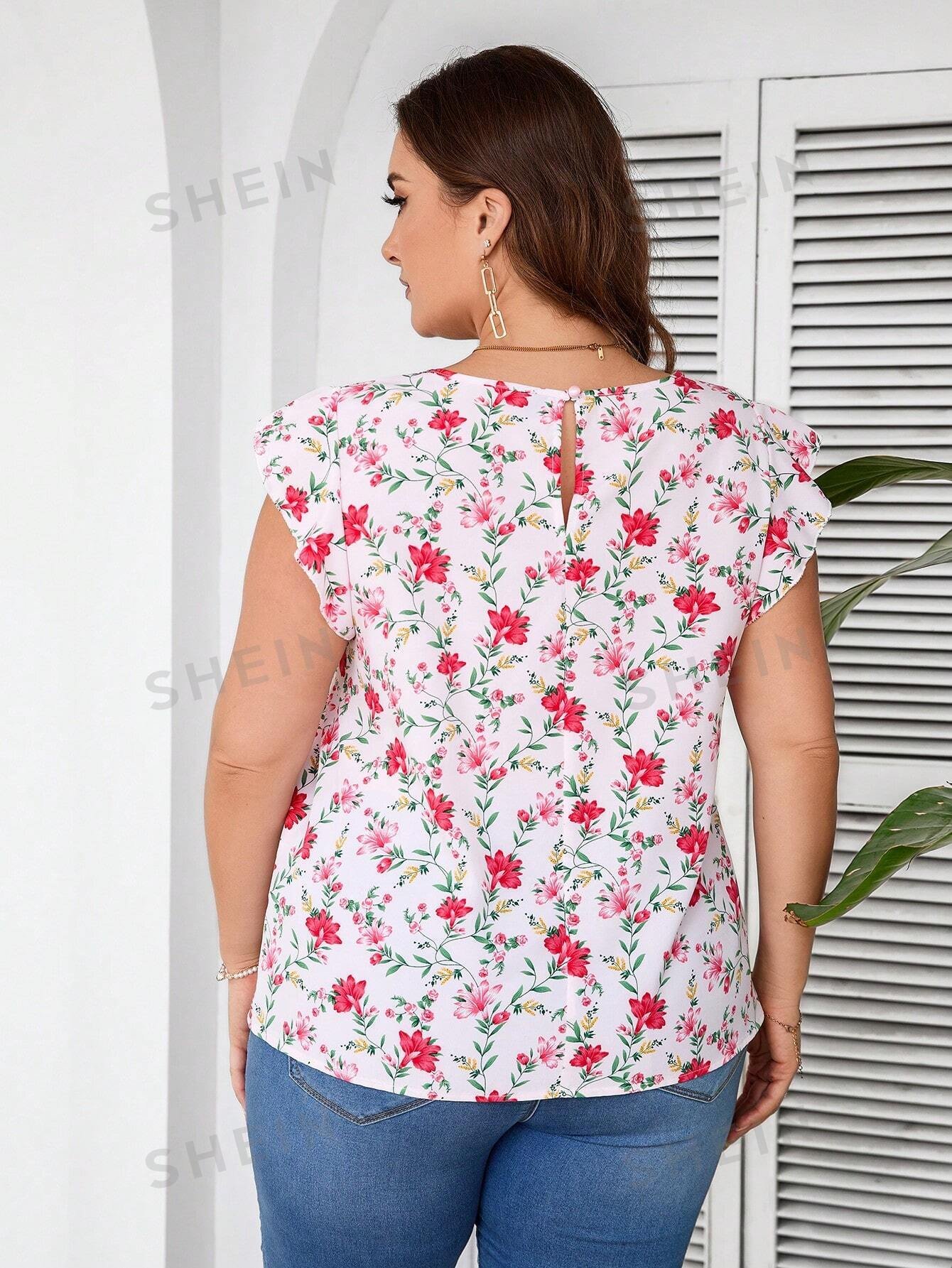 Blusa De Talla Grande Para Verano, Estampado Floral Casual