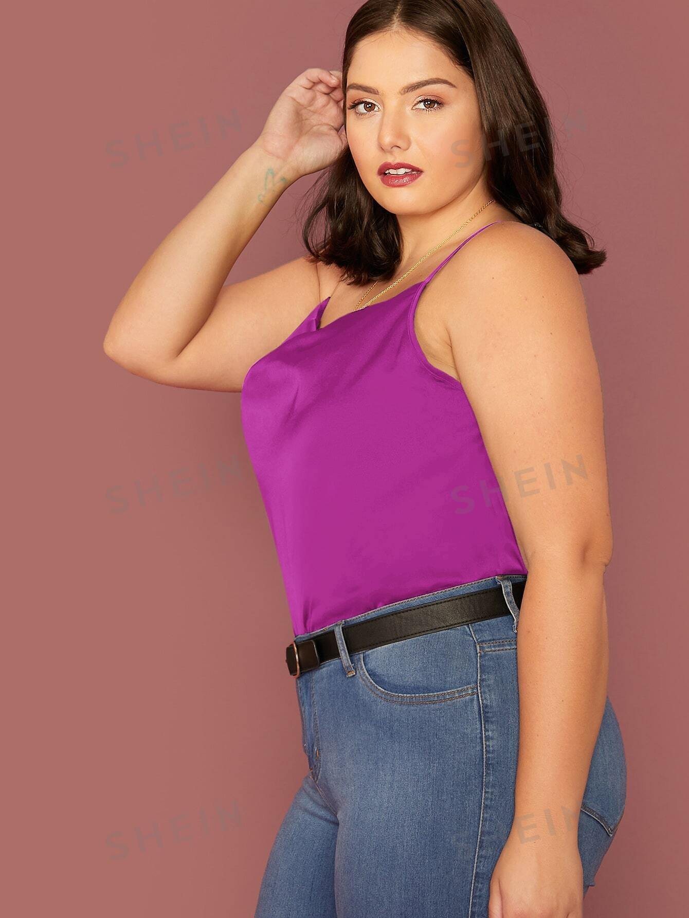Blusa de tirante de satén de cuello desbocado