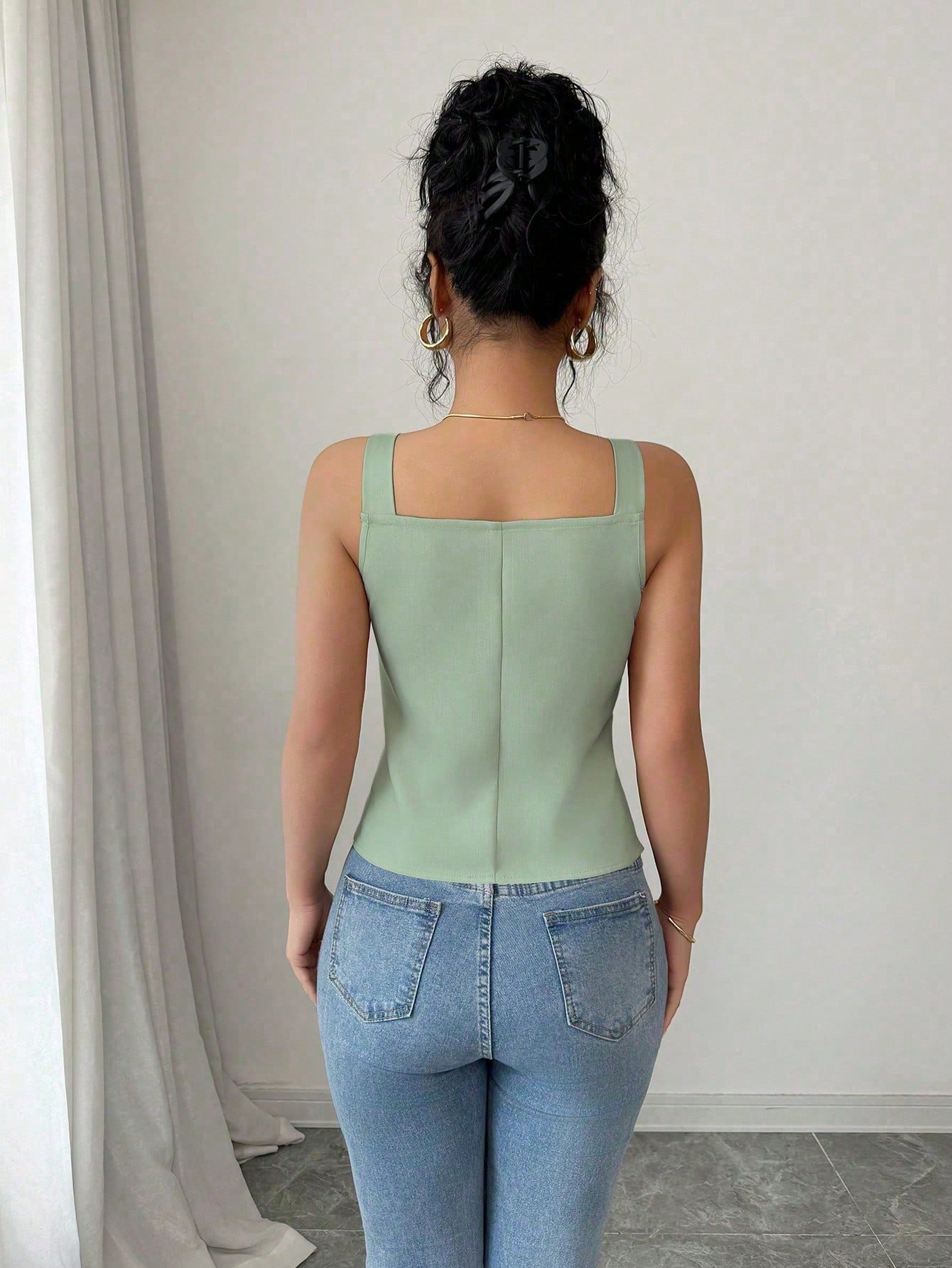 Blusa de Tirantes con Cuello en V Profundo, Cintura Ceñida y Lazo