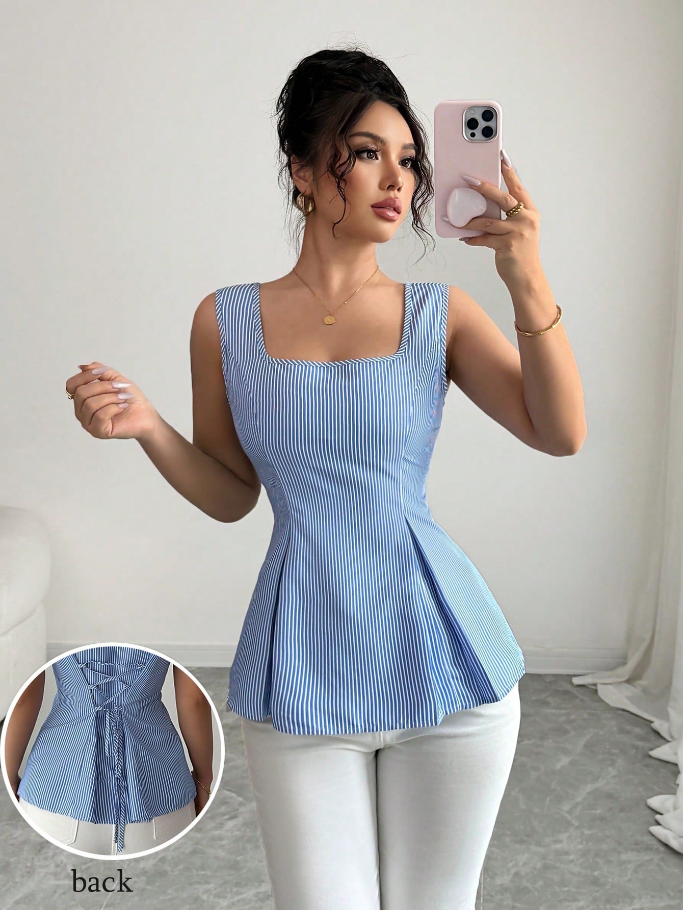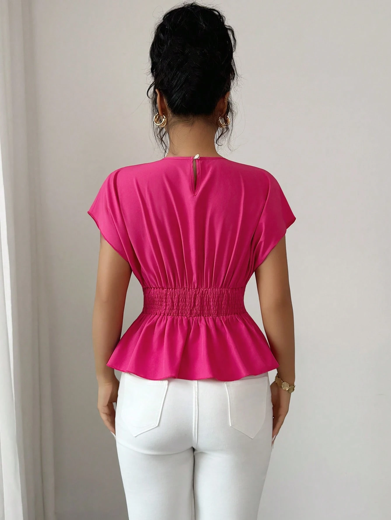 Blusa elegante de cuello redondo sin mangas y con cintura recogida