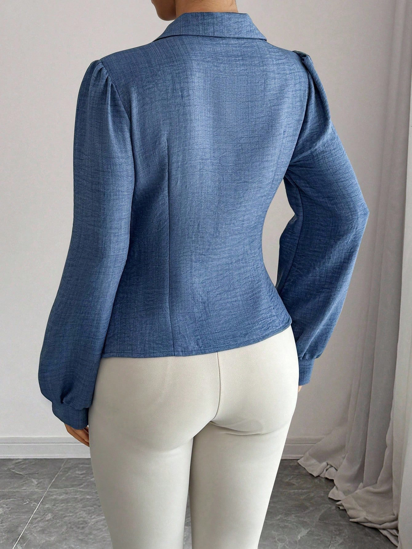 Blusa elegante de manga larga de unicolor con diseño metálico