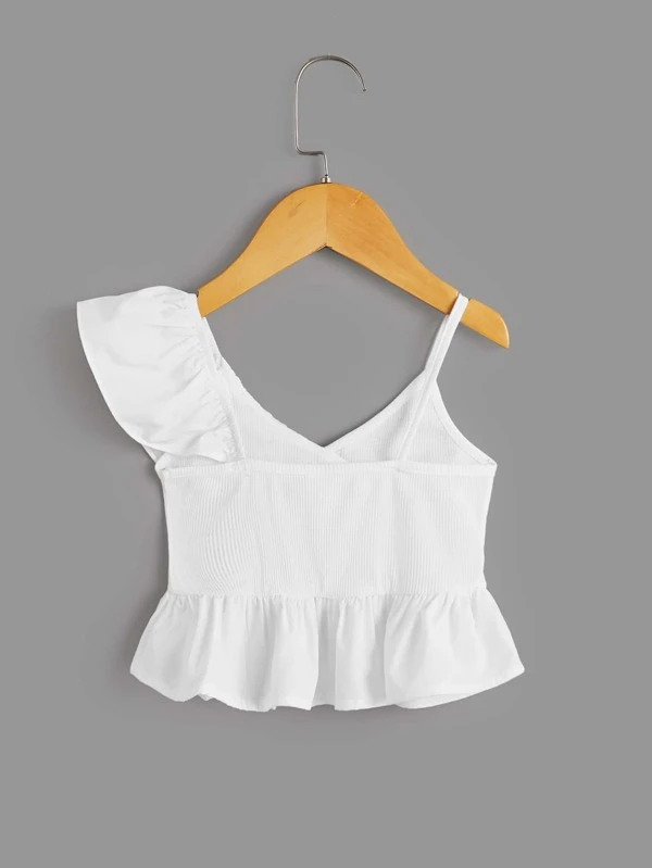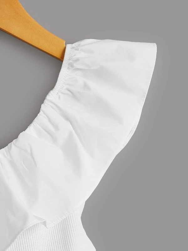 Blusa peplum de cuello asim?trico ribete con fruncido
