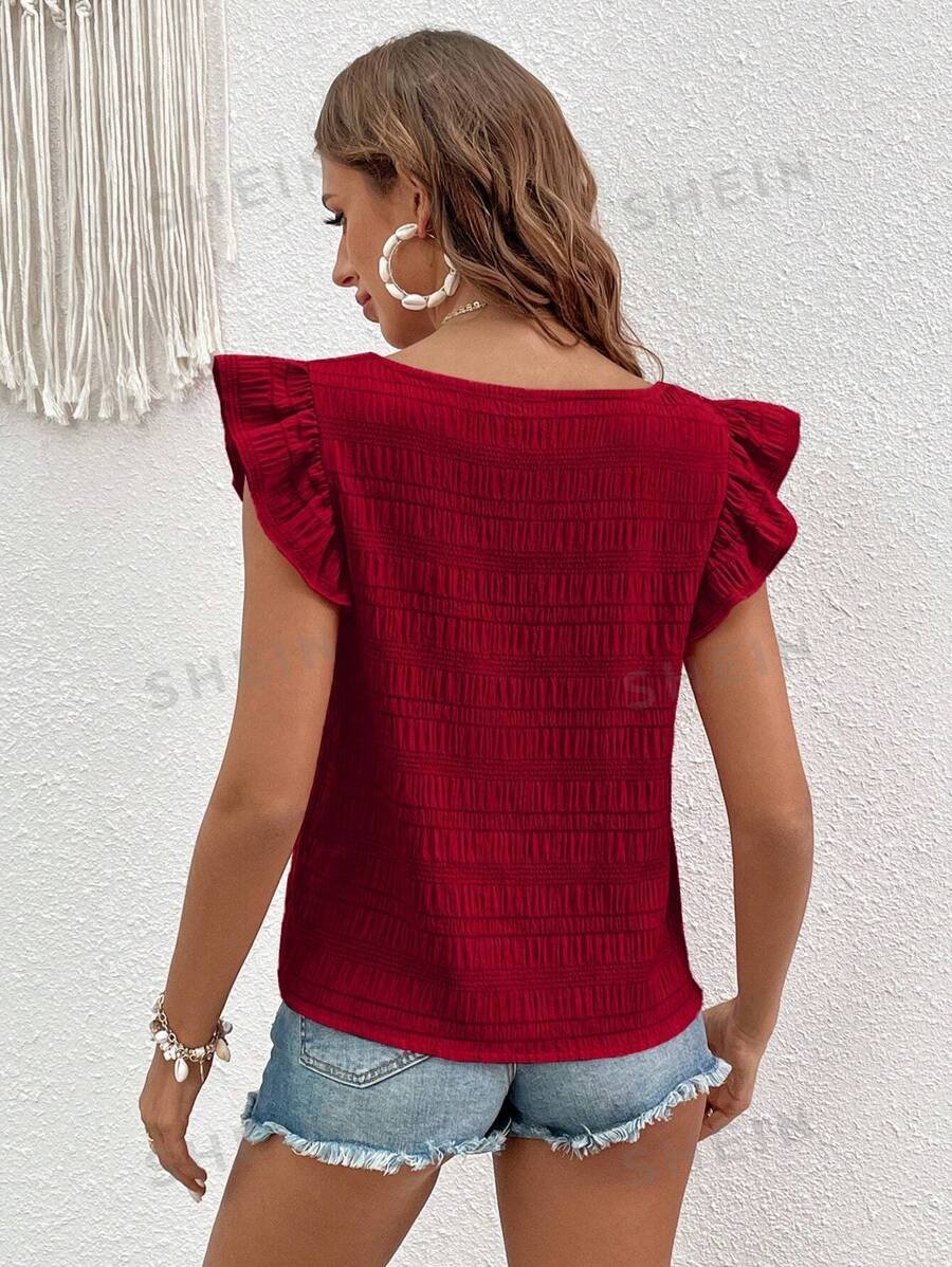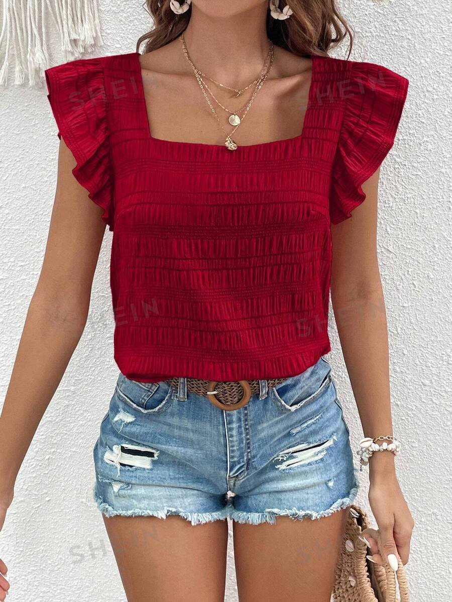 Blusa roja de verano para playa con tela plisada sólida