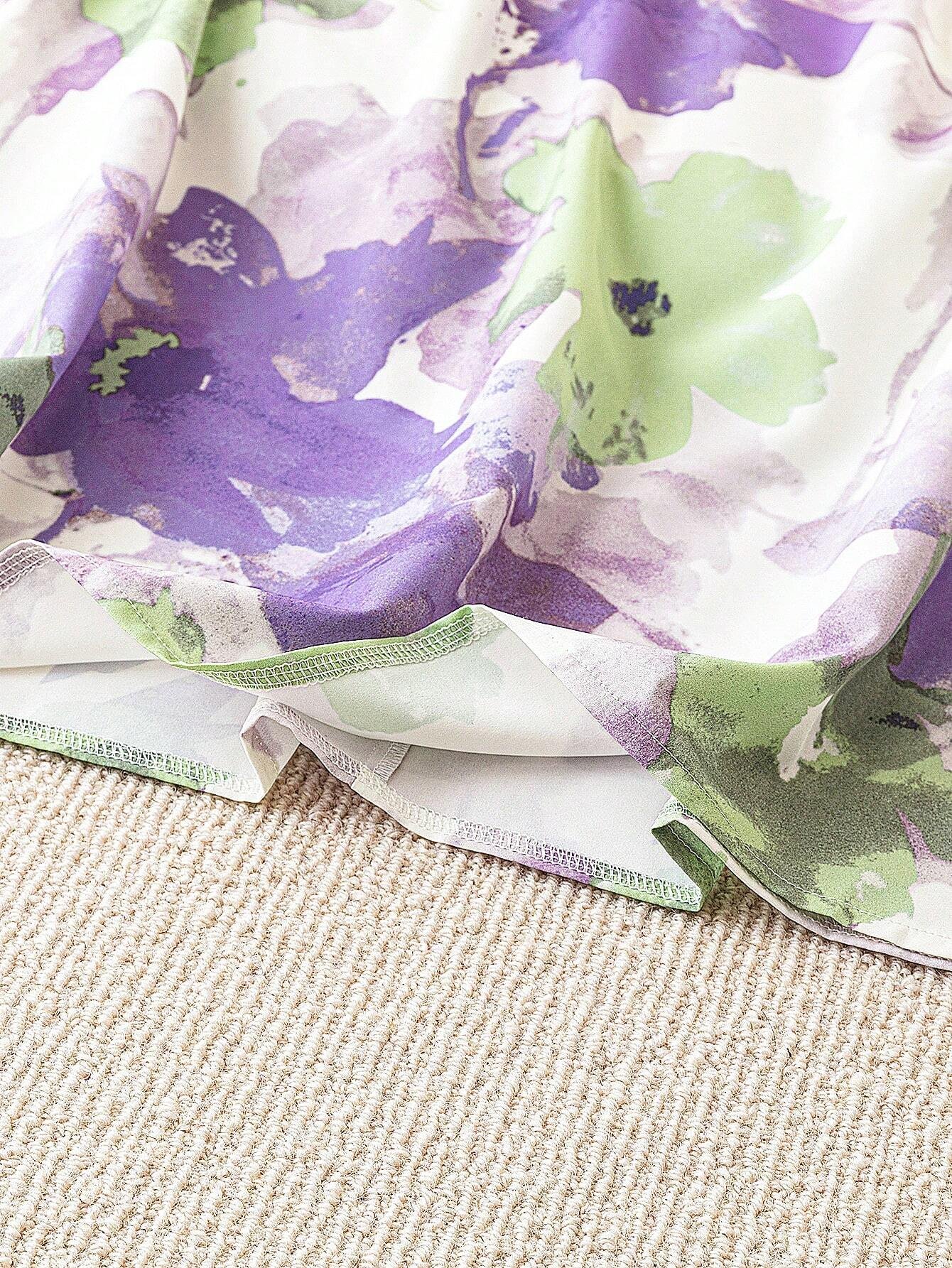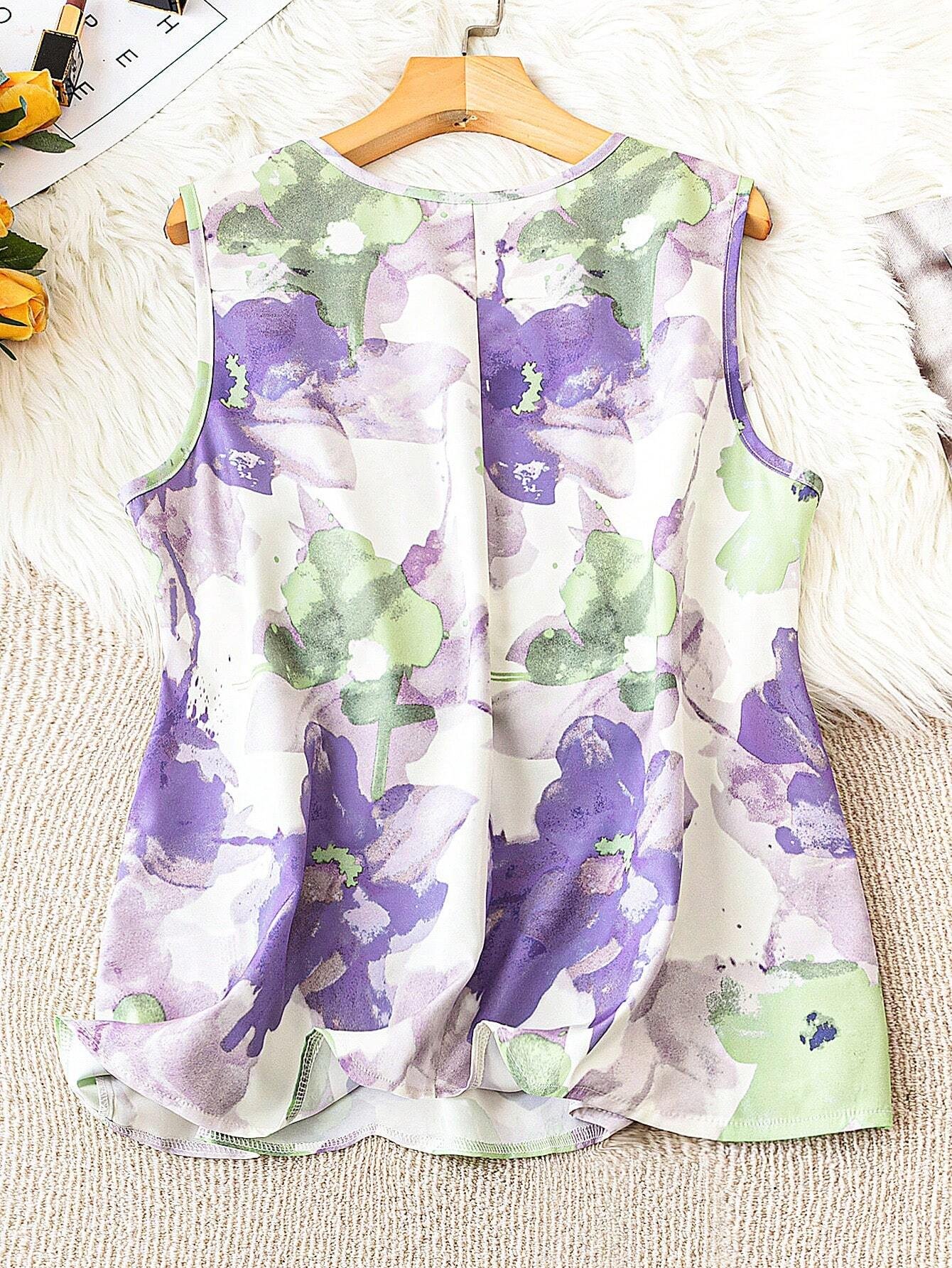 Blusa Sin Mangas Casual En V Suelta Con Estampado Floral En Talla Grande