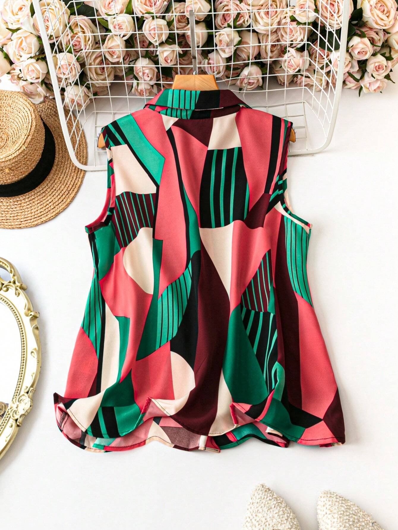 Blusa sin mangas de talla grande con botones delanteros, cuello con solapas