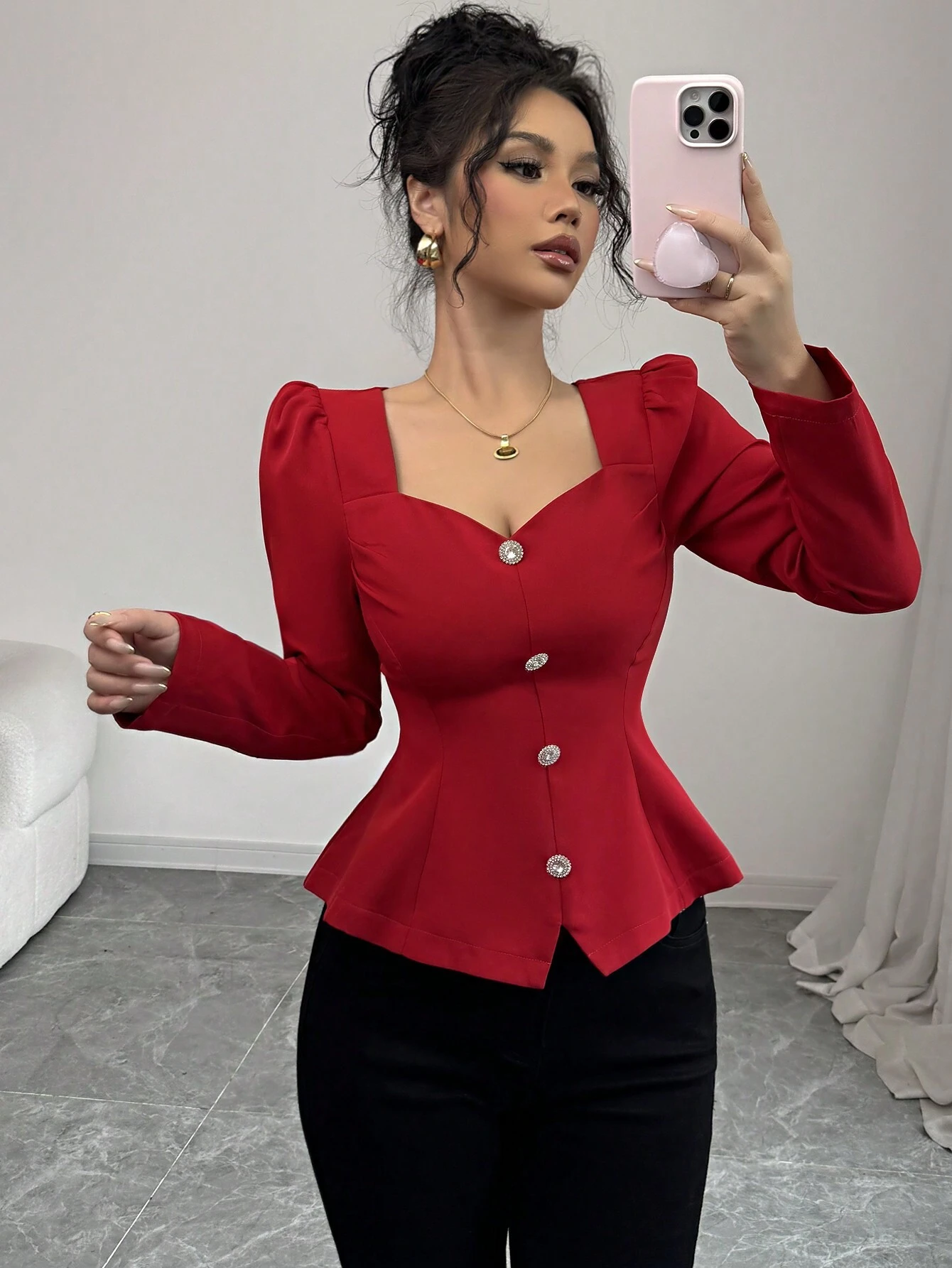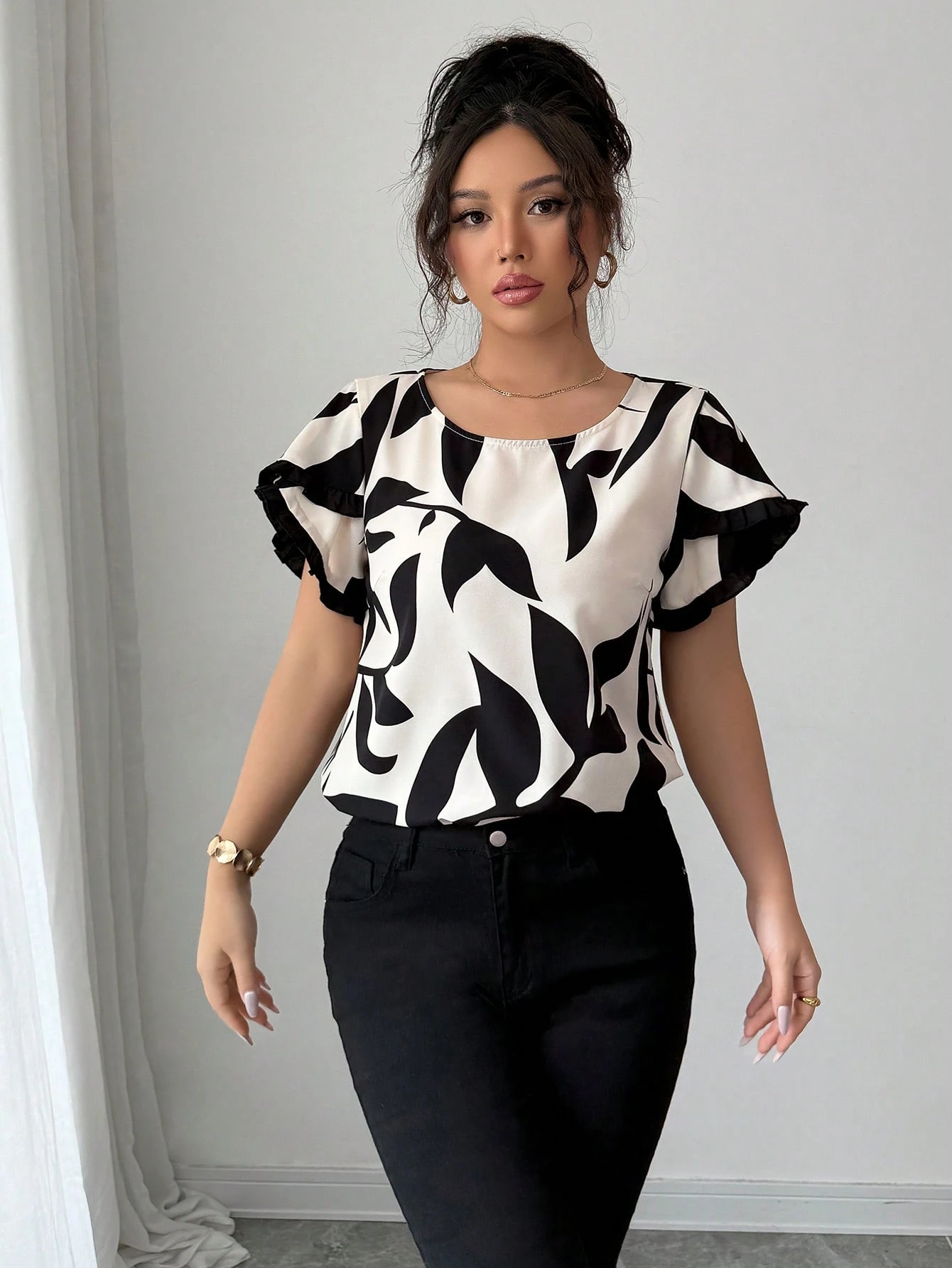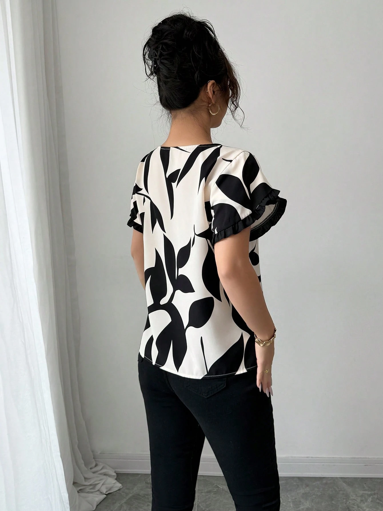 Blusa suelta de manga corta con cuello redondo, borde en contraste