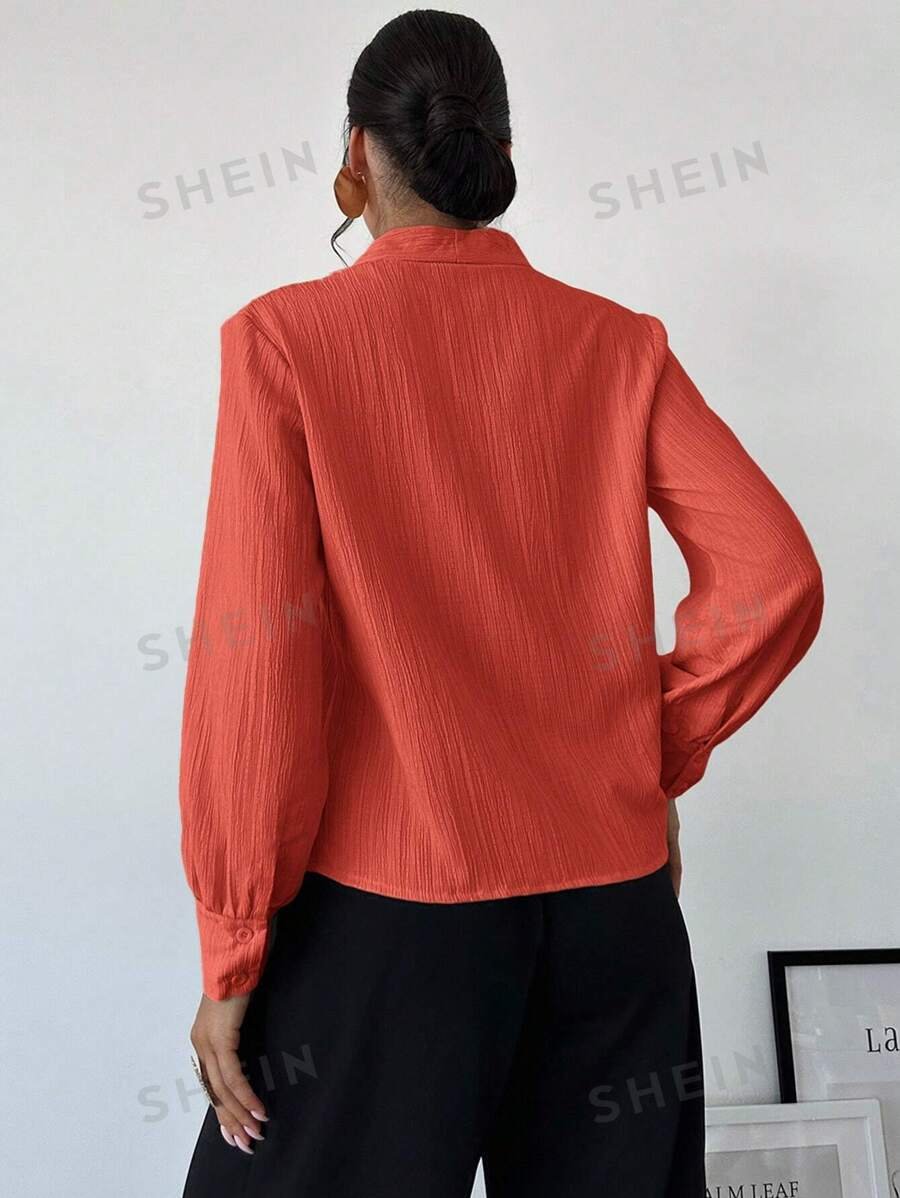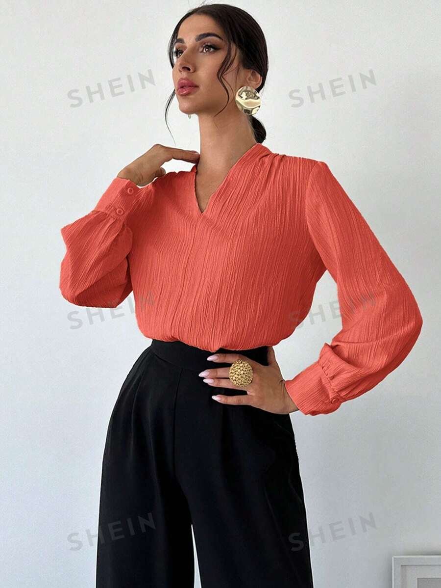 Blusa suelta de manga larga con cuello en V, lisa, para mujer