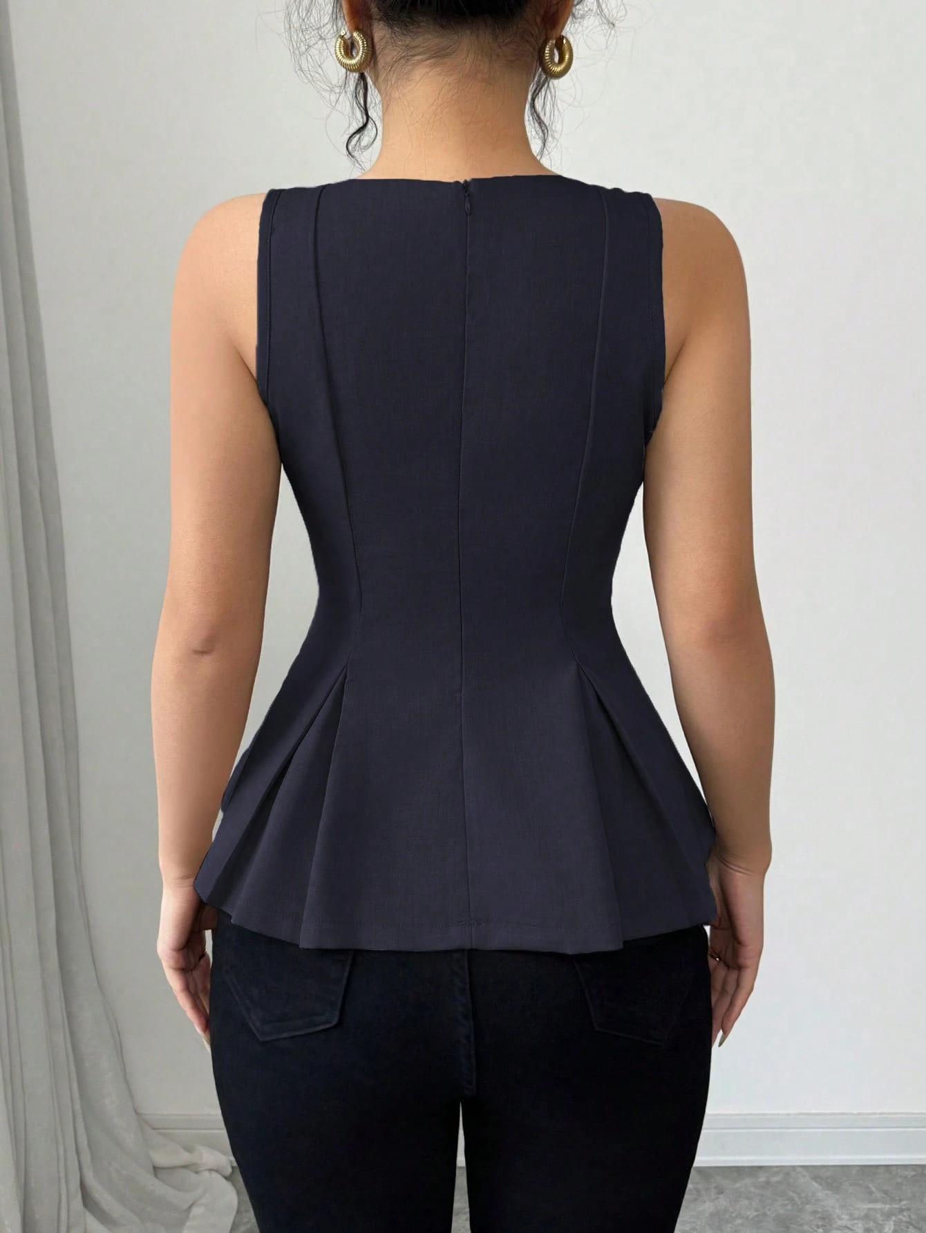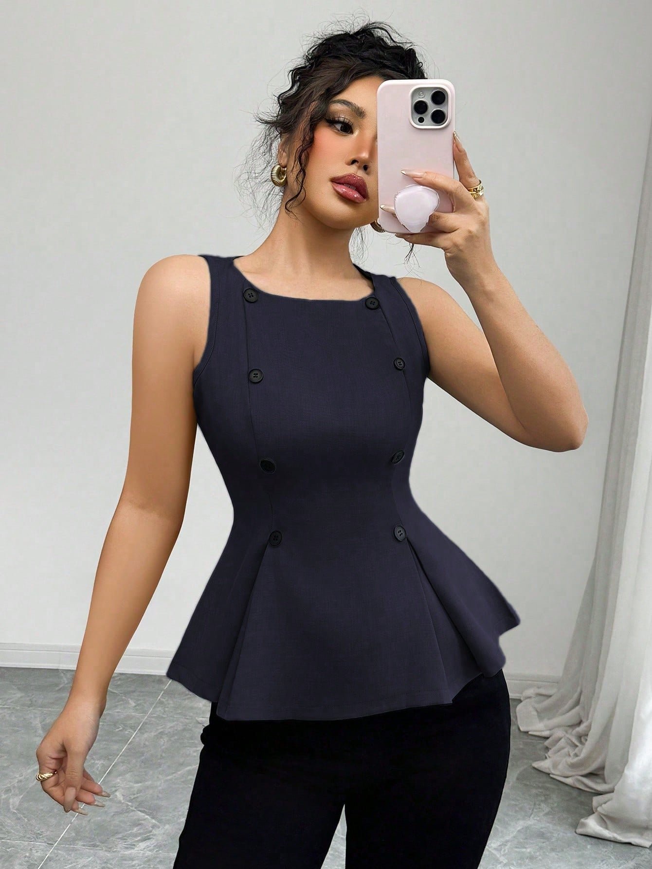 Blusa tipo peplum con cintura ceñida y decoración de botones elegante