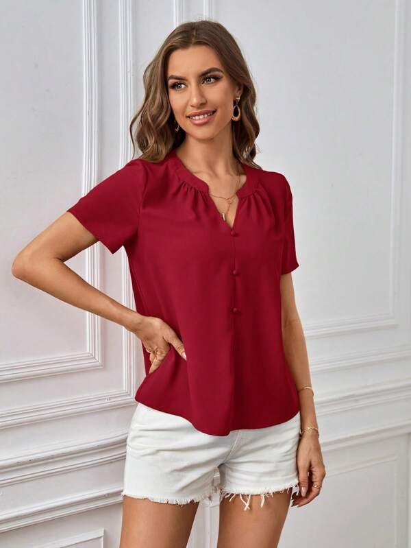 Blusa unicolor con bot?n delantero de cuello de muesca