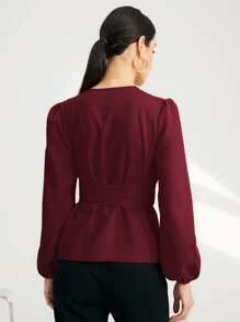 Blusa unicolor cruzado delantero con cintur?n