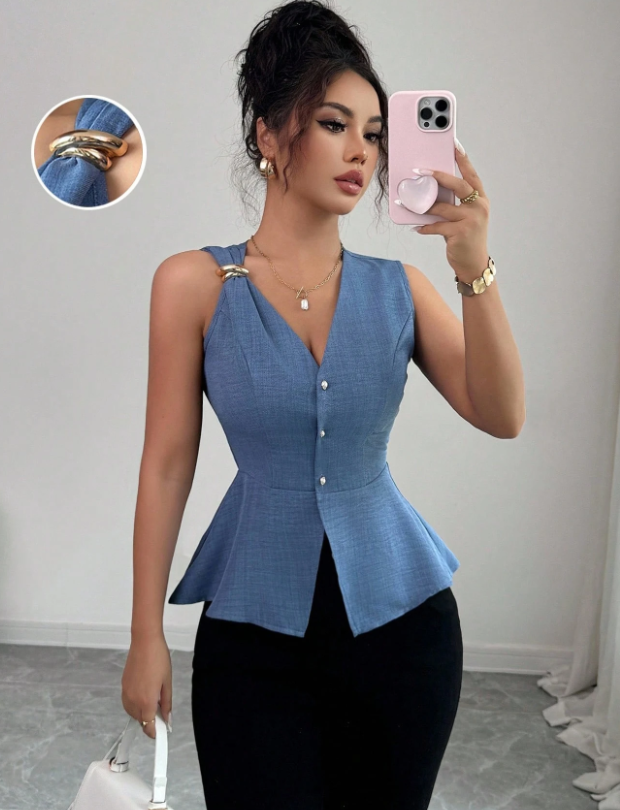 Blusa unicolor sin mangas con dobladillo y con abertura