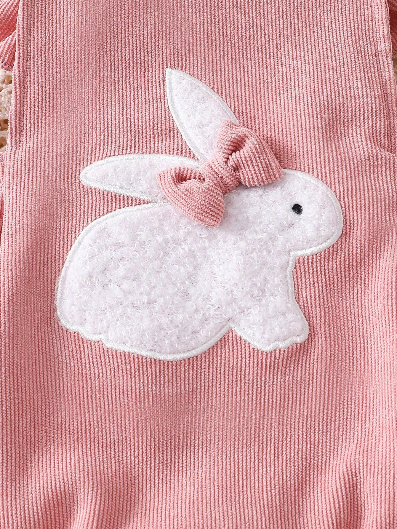 body de bebé con bordado de conejito lindo y decoración de pompones