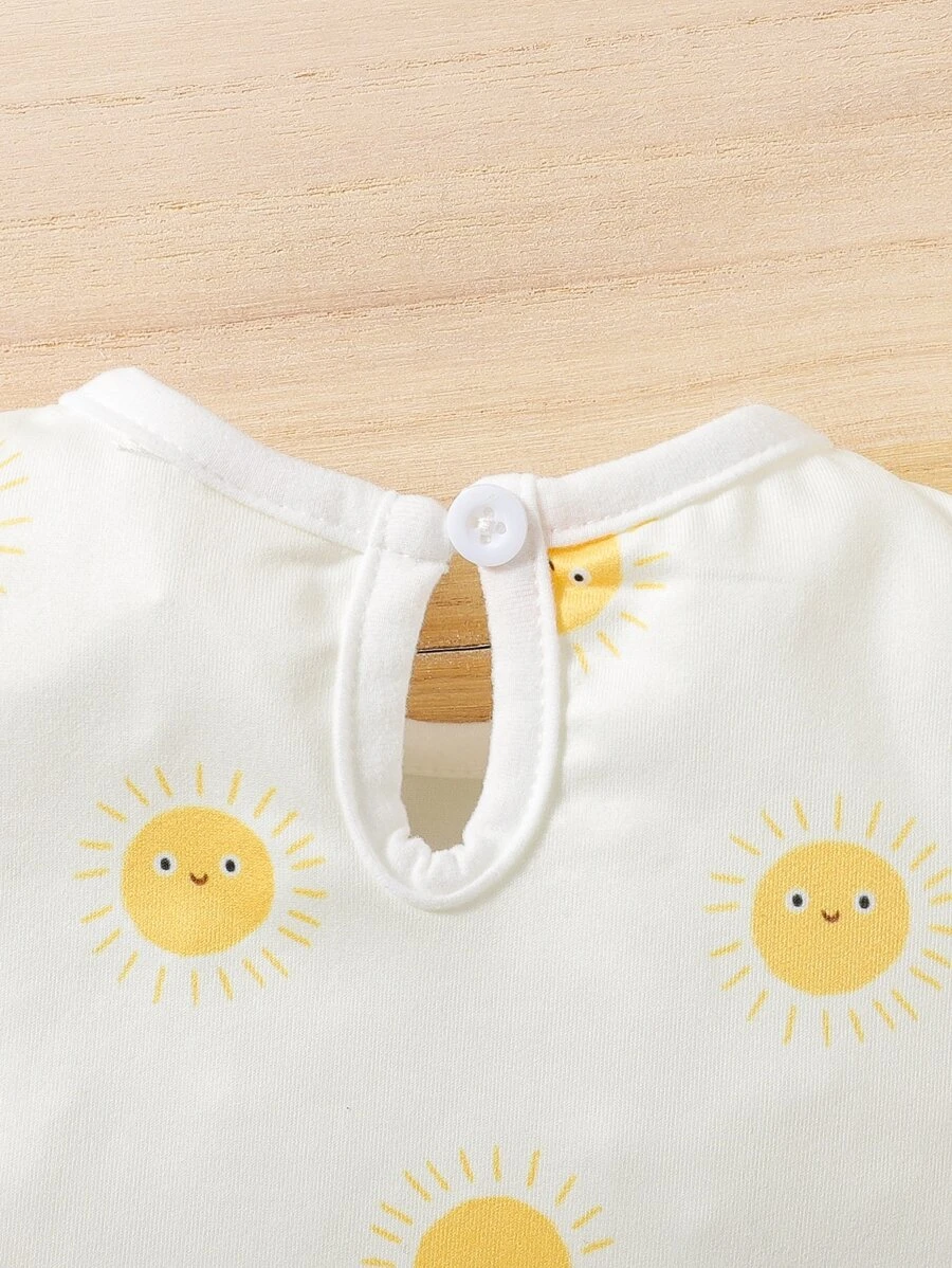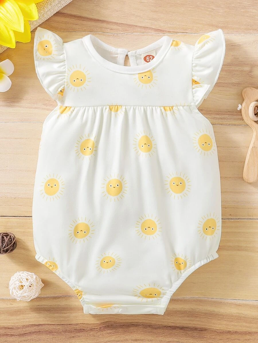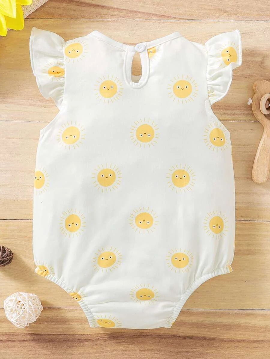 Body De Manga Corta Con Volantes Y Estampado De Sol De Dibujos Animados