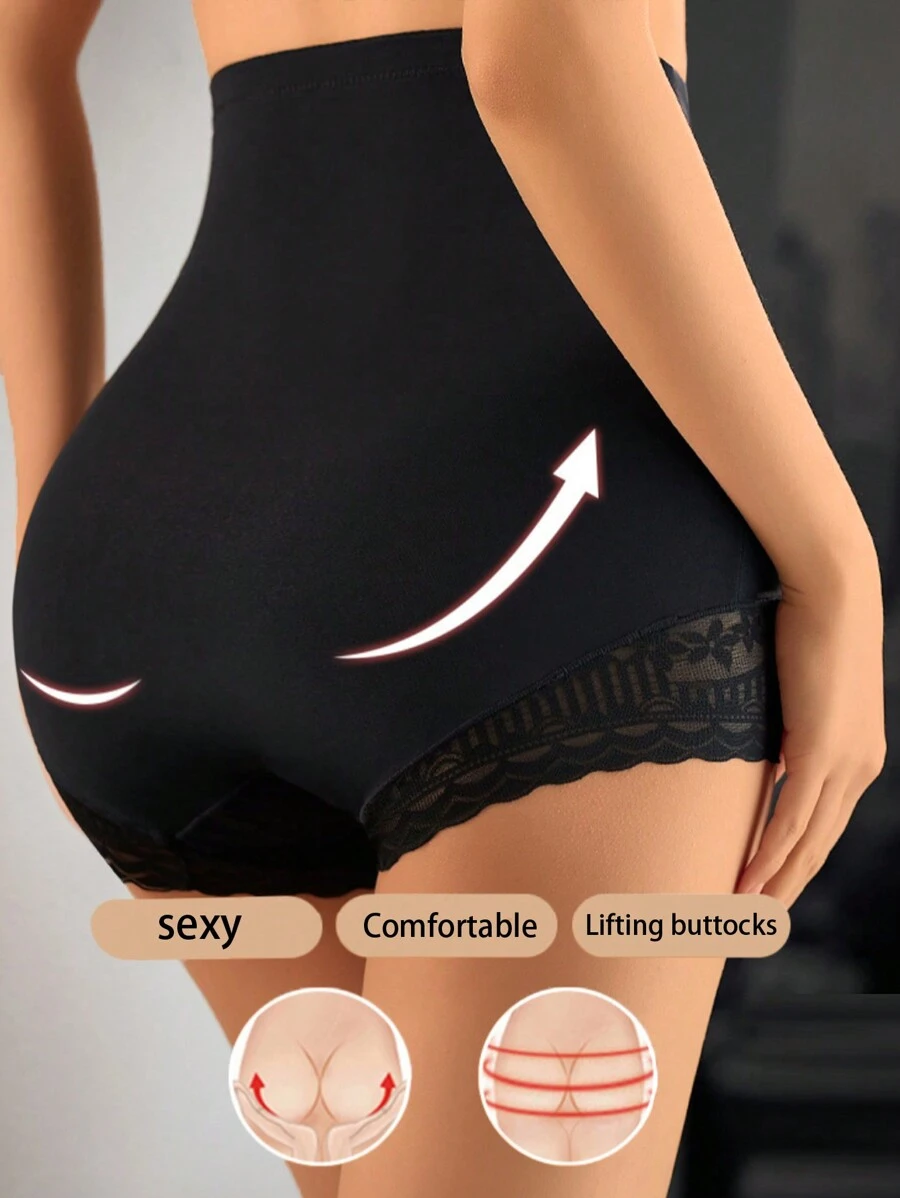 Bragas modeladoras de alta cintura y control de abdomen con encaje para mujer