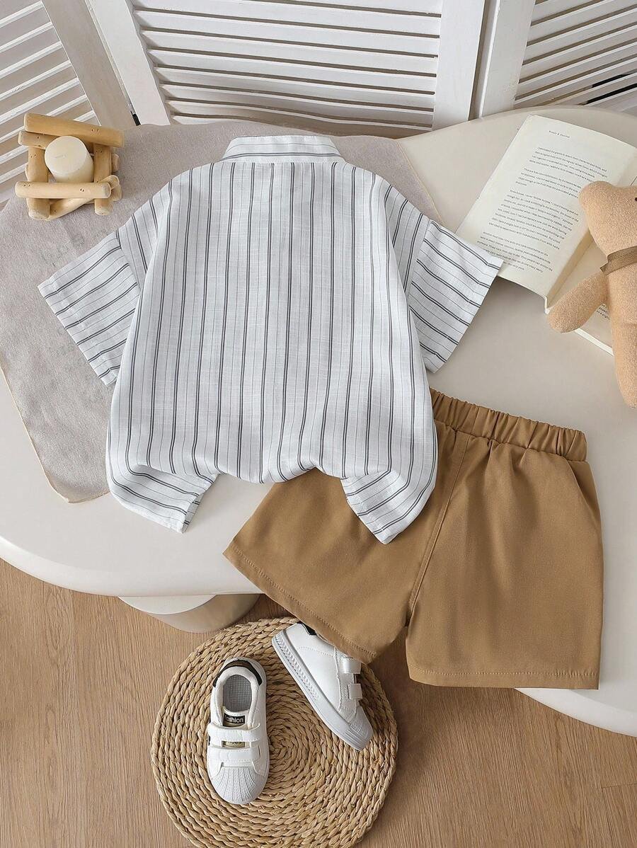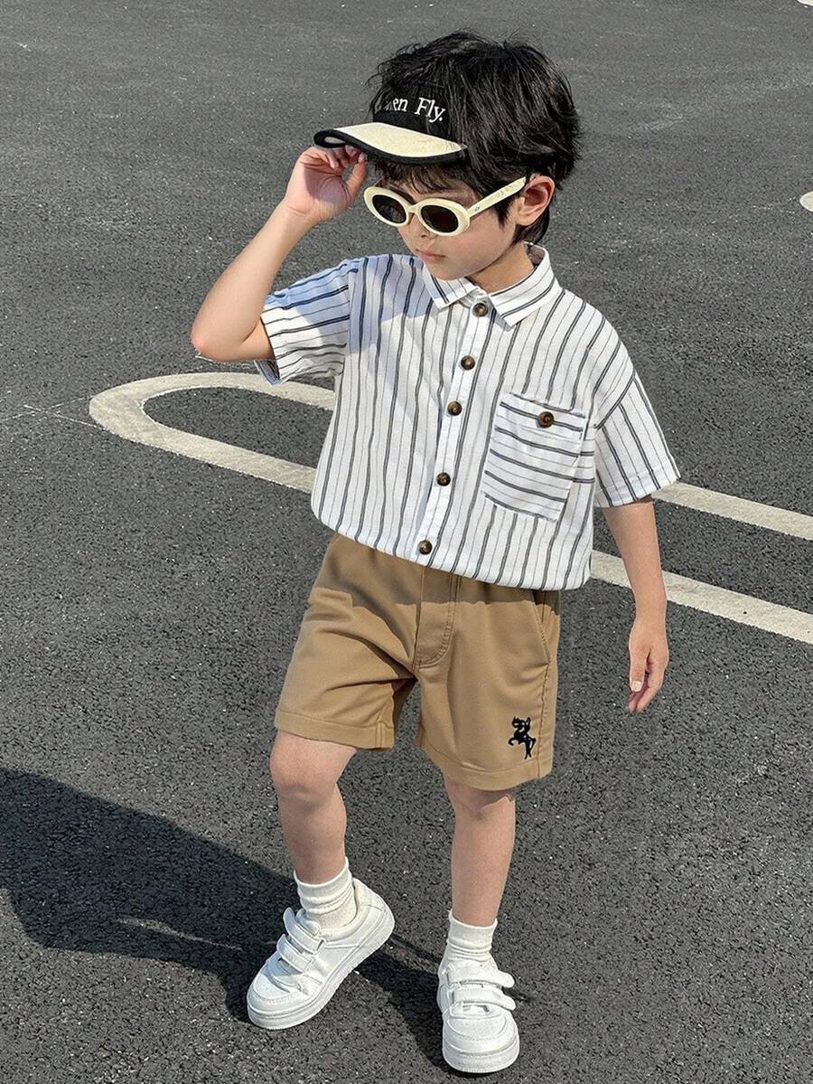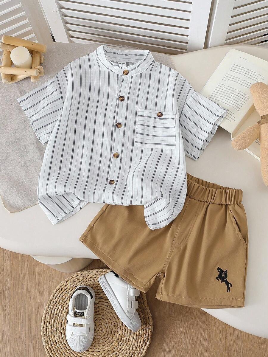 camisa casual a rayas y pantalones cortos sueltos bordados